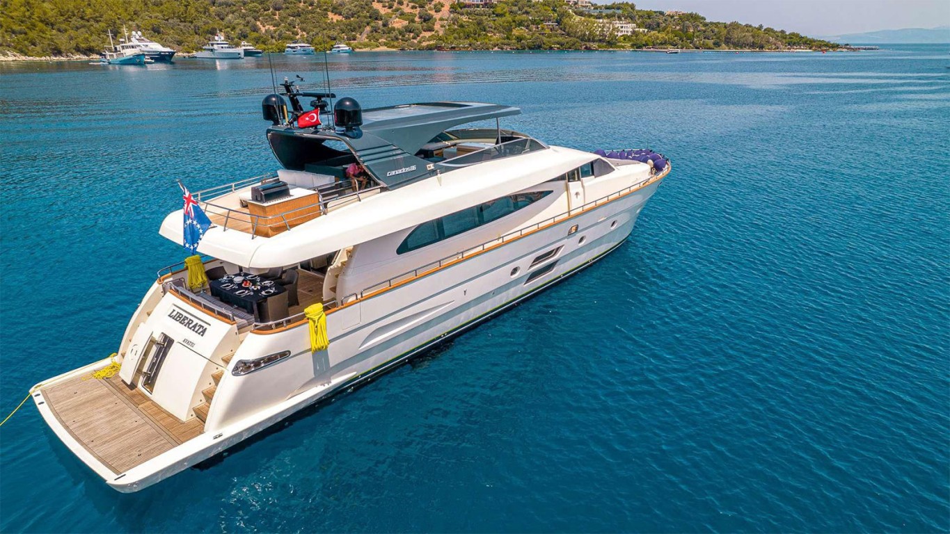 The motor yacht 'Liberata' was built by Canados in Italy at their Rome shipyard. This luxury vessel's exterior design is the work of Canados. 'Liberata' has been designed to comfortably accommodate up to 8 guests in 4 suites comprising one VIP cabin. She is also capable of carrying up to 4 crew onboard to ensure a relaxed luxury yacht experience.