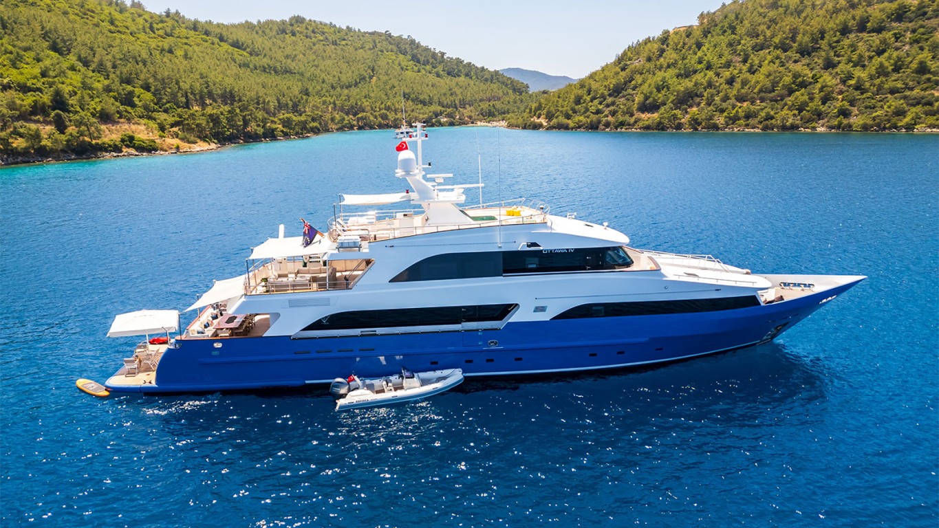 OTTAWA IV luxury motor yacht has been built by I-SEA Yachts shipyard in 2016. She is a 4-deck superyacht measuring 39m and scores with ample outdoor living and relaxing areas including a sundeck with Jacuzzi spa pool and bar. From her modern deck seating areas as well as her loft-style interiors with the finest joinery and neutral tones, the utmost comfort is on offer. The layout of charter yacht OTTAWA IV features sleeping for up to 12 guests in 5 deluxe cabins comprising one master suite, each two double guest and twin bed cabins making her ideal for families and friends at the same time. OTTAWA IV boasts a wealth of convivial spaces, perfect for luxury yacht charters with families of friends, offering ample opportunities to kick back and relax, or enjoy the water on the yacht's array of water toys, the choice is yours.
