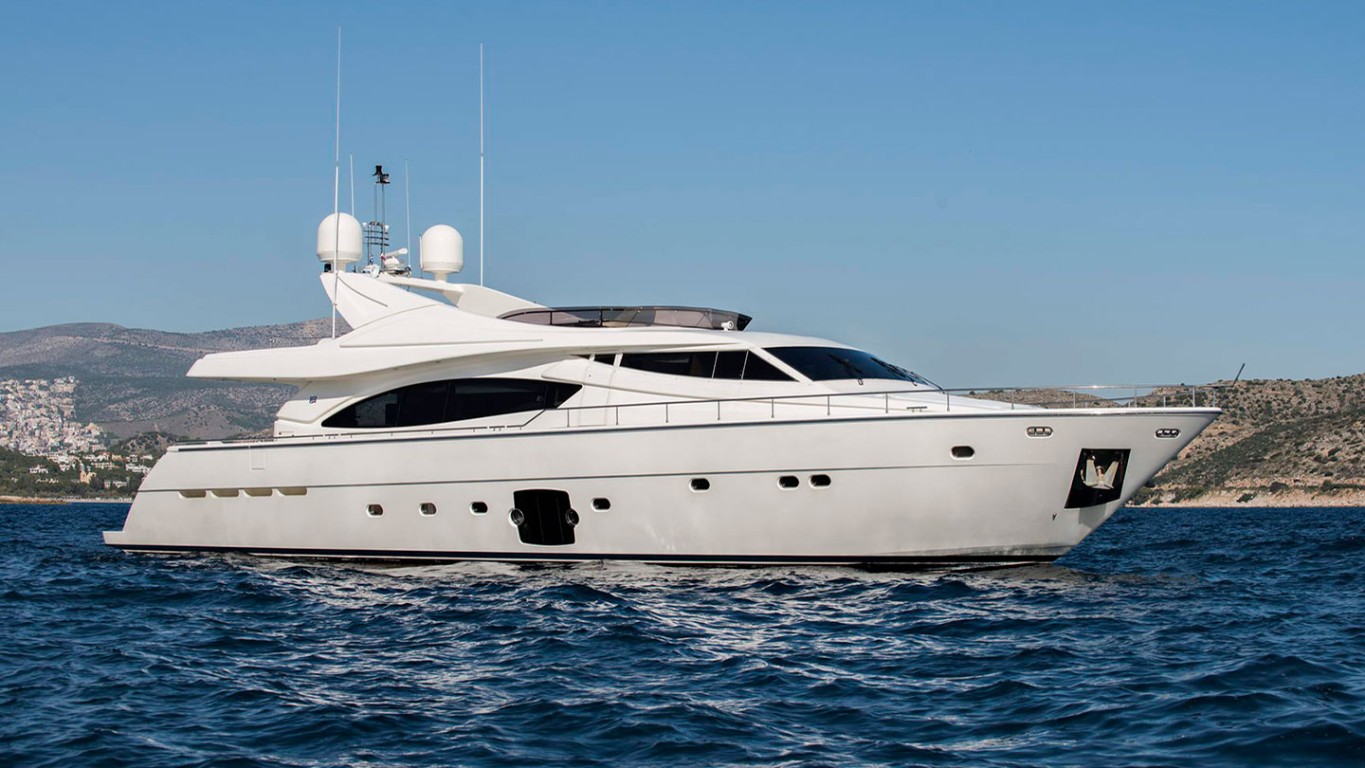 'Day Off' With unparalleled design and quality, this Ferretti 881 offers comfort, stunning looks, and technology that will maximize your experience cruising the Greek archipelago. A wonderful crew of five promise to make this the holiday you have been longing for. Her standout features include a beach platform to form a sumptuous, sea level deck, ARG stabilisers for extra comfort, spectacular master cabin windows for breathtaking views of the sea and a pool tub on the flybridge. Exceptional Greek cuisine adds up to an unforgettable on board experience.