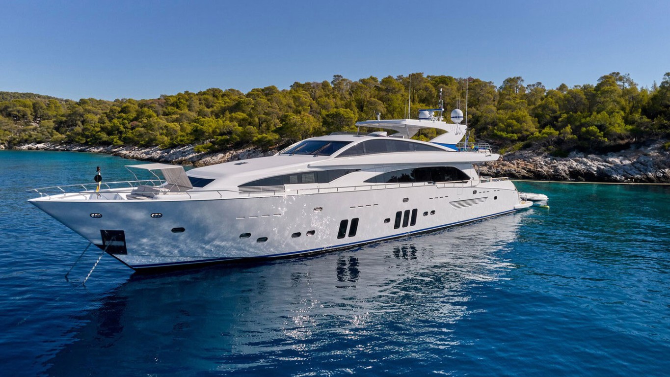 The luxury motor yacht 'Hakuna Matata' was launched in 2009 by the Couach shipyard and measures 37m. With a refit in 2023, She offers guest accommodation for up to 12 guests with a layout comprising a master suite, three double cabins and two twin cabins. There are 10 beds in total, including 2 king, 2 queen, 4 singles and 2 pullmans. She is also capable of carrying up to 8 crew onboard to ensure a relaxed luxury yacht charter experience. More outdoor living is offered on the expansive flybridge with comfortable seating, a dining area served by a wet bar, grill, fridge and ice maker. Based in the magical waters of the Greece all year round 'Hakuna Matata' is ready for your next luxury yacht charter.