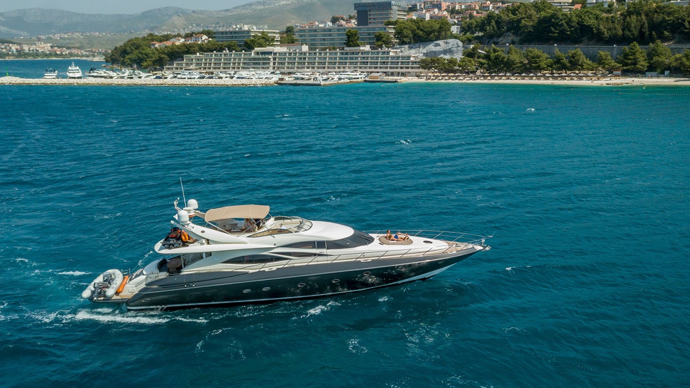 Luxury, crewed motor yacht Sunseeker Manhattan 84 'Skywater' was produced in 2000 and fully refitted in 2019 (new interior and fully outdoor teak). Spacious and comfortable, both on deck and below deck, this motor yacht provides all you can imagine for a perfect holiday on board. She has 2 crew members (Captain & Stewardess/Cook) with 4 guest cabins + crew. 'Skywater' offers guest accommodation for up to 8 guests in 4 suites comprising a master suite, one VIP cabin and two twin cabins. She is also capable of carrying up to 2 crew onboard to ensure a relaxed luxury yacht charter experience. You and your guests can enjoy a variety of experiences on Skywater including a deck jacuzzi, perfect to enjoy the scenery with your favourite drink in hand.