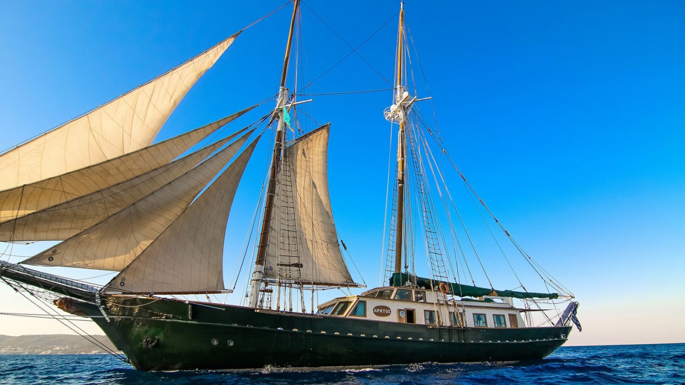 ARKTOS, is a classic schooner motor sailer of 34.60 m in length for luxury crewed charters in the East Mediterranean Sea. She accommodates up to 11 guests in 5 cabins with en suite facilities. Each one of her cabins is named after a different constellation. She sails in, with a crew of 7, ready to provide everything possible for the guests relaxation, in order to have a beautiful time on board. Spend your afternoon in tranquillity on the spacious fore and aft of the yacht where you may enjoy an elegant, al fresco dining setting under the stars in total privacy. Unwind on your sun bed amidst enviable sea views while feeling the gentle rocking of the waves beneath you.