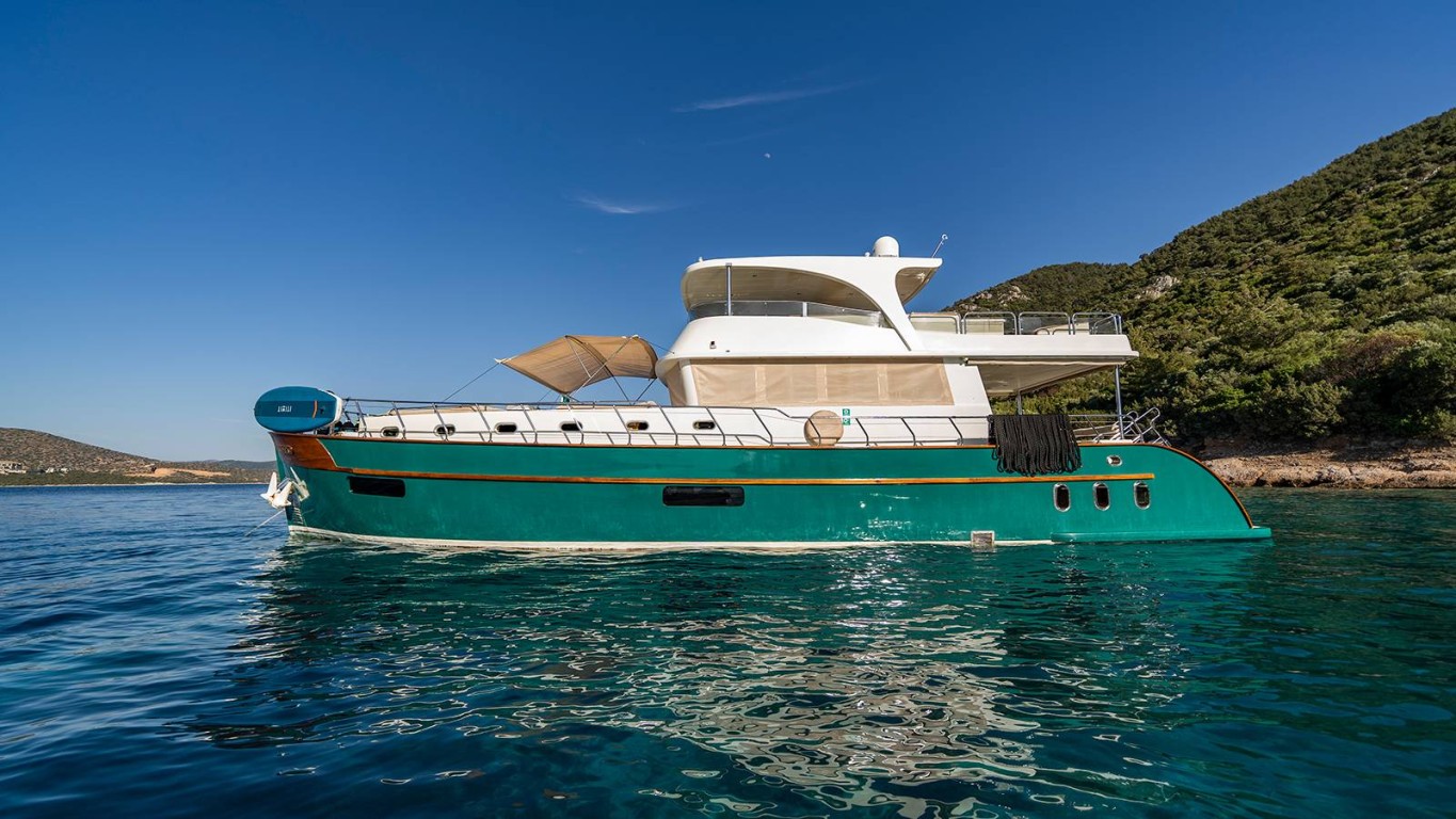 'Babosch' is a 20 meter trawler yacht, with four cosy cabins and en-suite to be comfortable for up to 8 passengers. The interior lounge has elegant features with a long couch complete with TV and DVD player and music system. The rear deck overlooks the water access point and make for a relaxed dining area. At the front, there is a sunbathing and relaxation area with optional shade. Above on the fly deck is an unshaded sitting area, including comfortable bean backs, at the front of the fly deck near the helm is another shaded lounge including TV and 360-degree views.