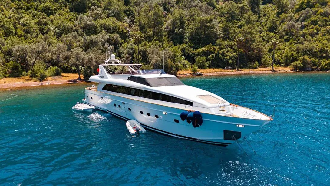 Welcome aboard Yacht 'Blues', a masterpiece of maritime craftsmanship and refined elegance. This stunning 100-ft motor yacht, originally built by Ses Yachts in 1997 and meticulously refitted in 2023. She offers guest accommodation for up to 10 guests in 5 cabins. She is also capable of carrying up to 5 crew onboard to ensure a relaxed luxury yacht experience. 'Blues' is equipped with a large swim platform perfect for diving into crystal-clear waters or launching water toys and tenders. Step aboard Yacht 'Blues' and embark on an unforgettable voyage where luxury, comfort, and adventure converge seamlessly on the shimmering waters of the Aegean.
