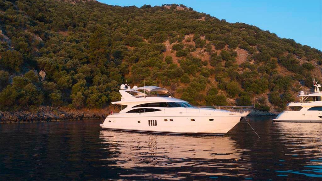 4 cabins motor yacht Princess 21M - 'Bormus 2' was built in 2007 (refitted in 2020). 'Bormus 2' can accommodate up to 8 people in 3 double cabins and 1 double cabin with a bunk bed. This motor yacht boasts spacious interiors and ample deck space, providing an unparalleled level of comfort and relaxation for you and your guests. Equipped with state-of-the-art amenities and a professional crew dedicated to providing five-star service, 'Bormus 2' promises an unforgettable journey on the open seas. Explore breathtaking coastlines, discover hidden coves, and indulge in the ultimate luxury aboard 'Bormus 2' .
