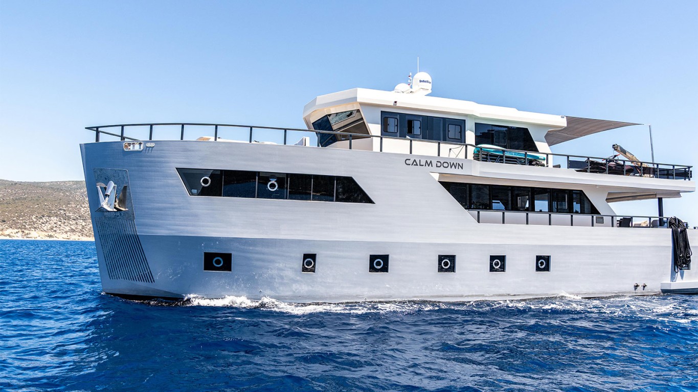The Luxury Motoryacht 'Calm Down' with a sleek design both inside and out. Built in 2023, this 30-meter long yacht promises an unparalleled cruising experience, offering comfort and elegance at every turn. Step on board and discover 6 luxurious cabins, each exquisitely designed to accommodate up to 12 guests. Powered by a 2 x 600 HP Volvo Penta engine and a 2 x 35 kW ONAN generator, Calm Dawn offers a fast and reliable yachting experience. Each of the cabins is elegantly designed and allows you to have an unforgettable travel experience.The experienced crew of 'Calm Down' consists of a skilled captain, a talented chef, two sailors, and two hostesses who are dedicated to providing you with excellent service and ensuring your utmost comfort and satisfaction throughout your charter. Book your next the Mediterranean luxury yacht charter aboard 'Calm Down' this summer.
