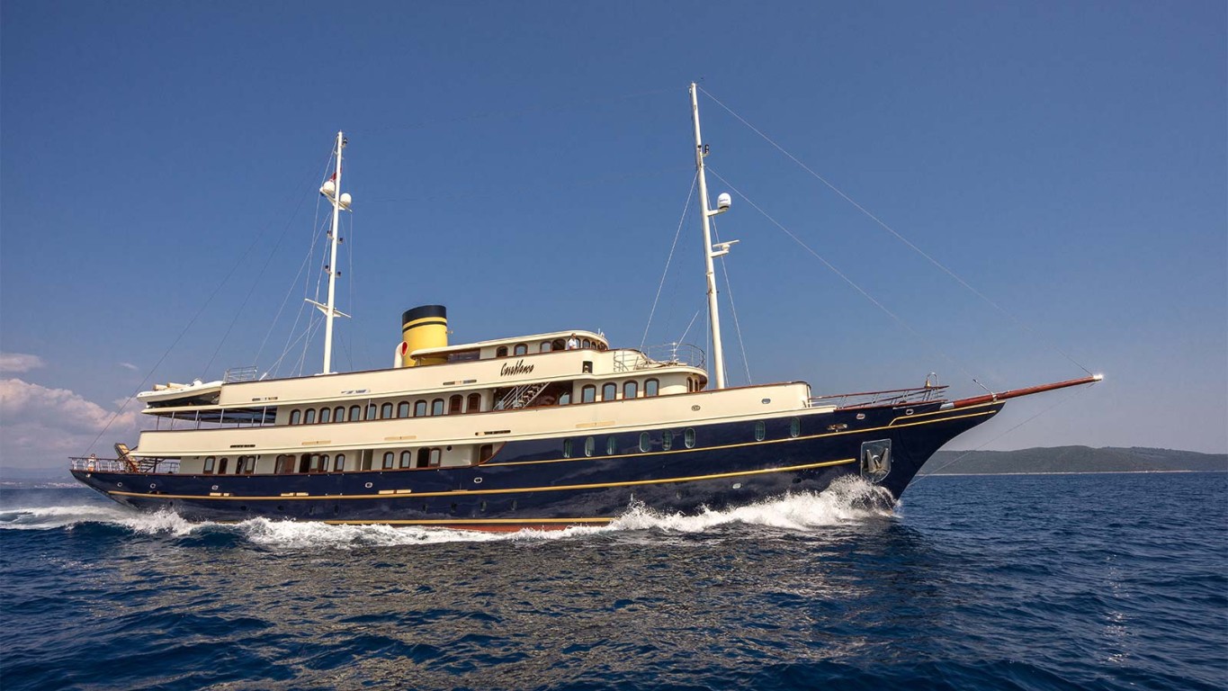 Luxury yacht "CASABLANCA" is a 61m mini cruiser built in 2016 who is ideal for large groups looking for a charter on board a beautiful classically styled yacht. She offers outstanding leisure and entertainment facilities including plenty of al fresco space, jacuzzi, sauna and wellness zone plus accommodation for up to 36 guests in 18 top end cabins. "CASABLANCA" presents guests with a choice of three exterior deck levels including a huge sundeck, sociable upper deck and main deck with central transom door which opens creating stepped access to a swim platform at the stern. She is painted with a deep blue hull with yellow stripe and warm neutral superstructure creating an elegant and traditional aesthetic. Plenty of teak decking, handrails and window frames are immaculately maintained and set off beautifully with chrome details. There are 18 staterooms across the main and lower decks with a variety of configurations including doubles, twins and some triples (double with additional single berth). All the staterooms are beautiful and finished with comfortable beds, clever storage and rich soft furnishings. All the cabins also benefit from the privacy and luxury of ensuite bathroom facilities with quality fixtures and fittings. Cabin configuration 5 x Double+1/1extra cabin, 8 x Double cabin, 6 x Twin cabin