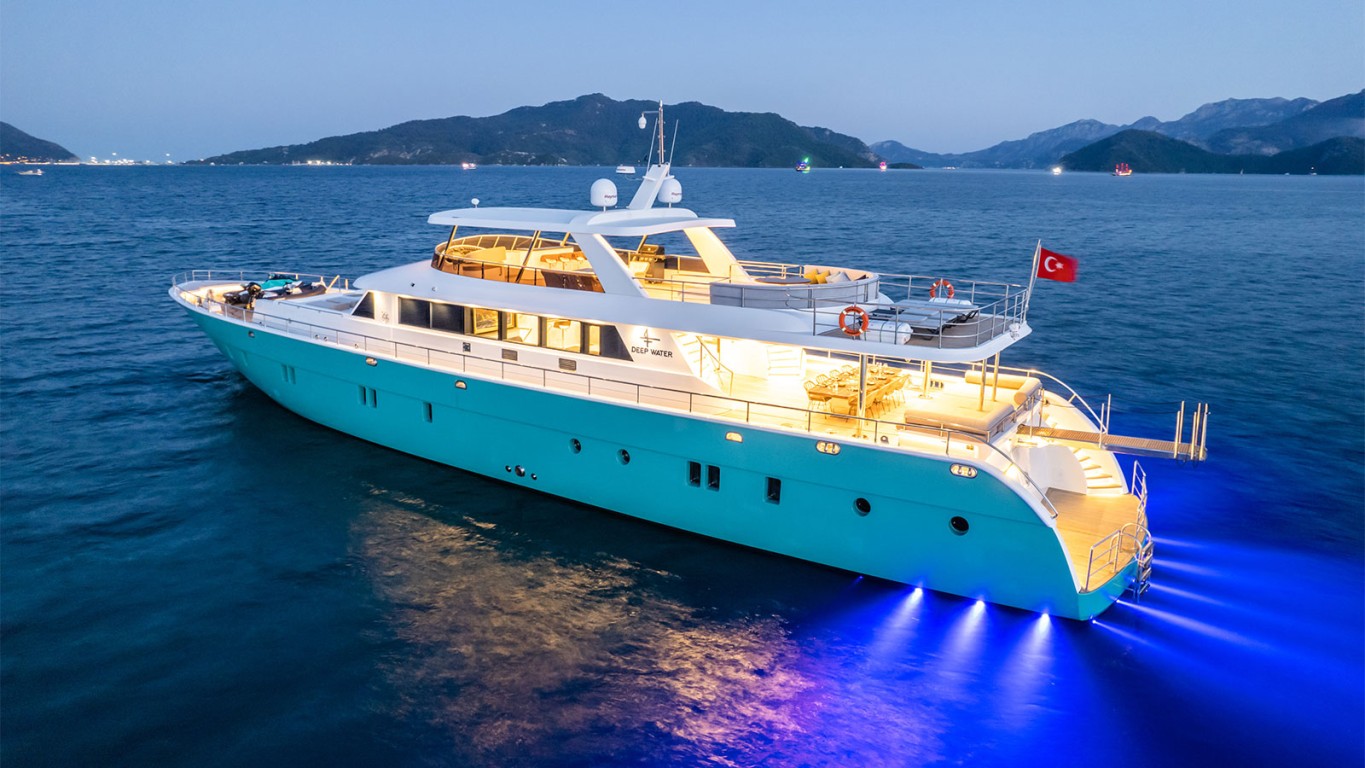 The 39.2m motor yacht 'Deep Water' is an excellent new superyacht for the luxury charter market. Delivered by shipyard Deva Gemicilik. 'Deep Water' offers guest accommodation for up to 12 guests in 6 suites comprising six double cabins. She is also capable of carrying up to 7 crew onboard to ensure a relaxed luxury yacht charter experience. On your charter, you'll find plenty to keep you busy and entertained such as a deck jacuzzi, perfect to enjoy the scenery with your favourite drink in hand. Experience the magical places, food and experiences of the Mediterranean this summer from the luxury of your own motor yacht. 'Deep Water', her captain and talented crew are ready to make sure that your yachting experience is like nothing else.