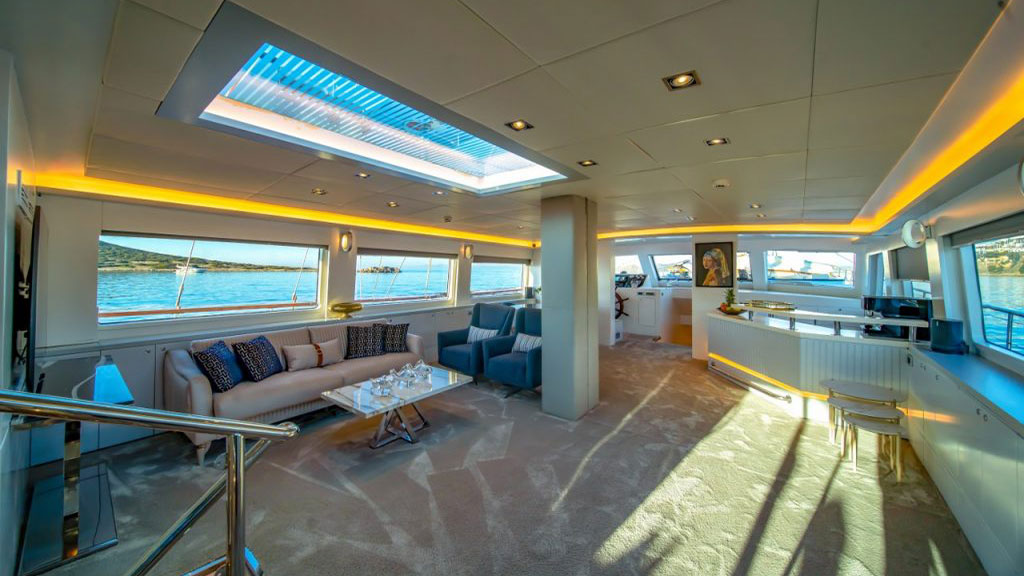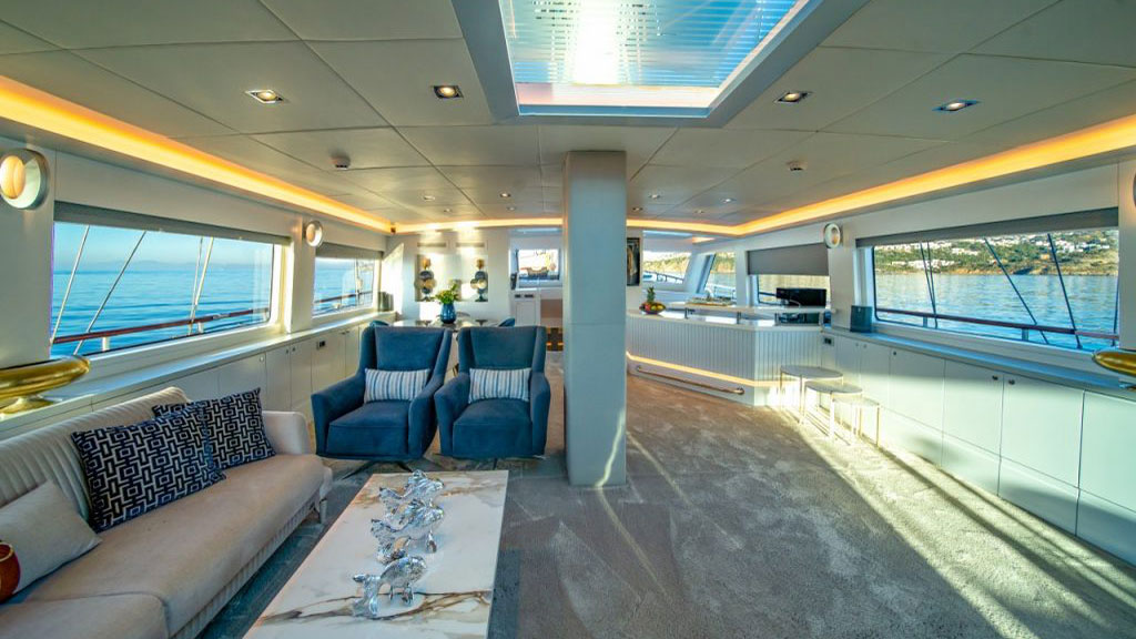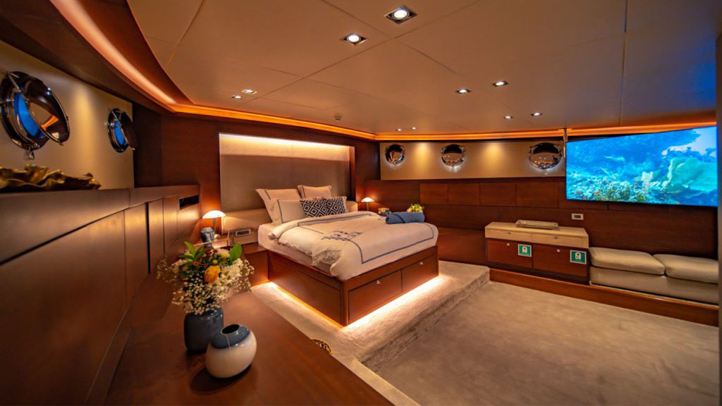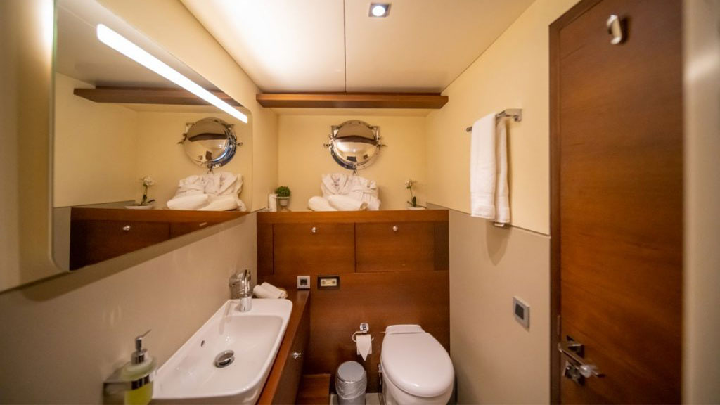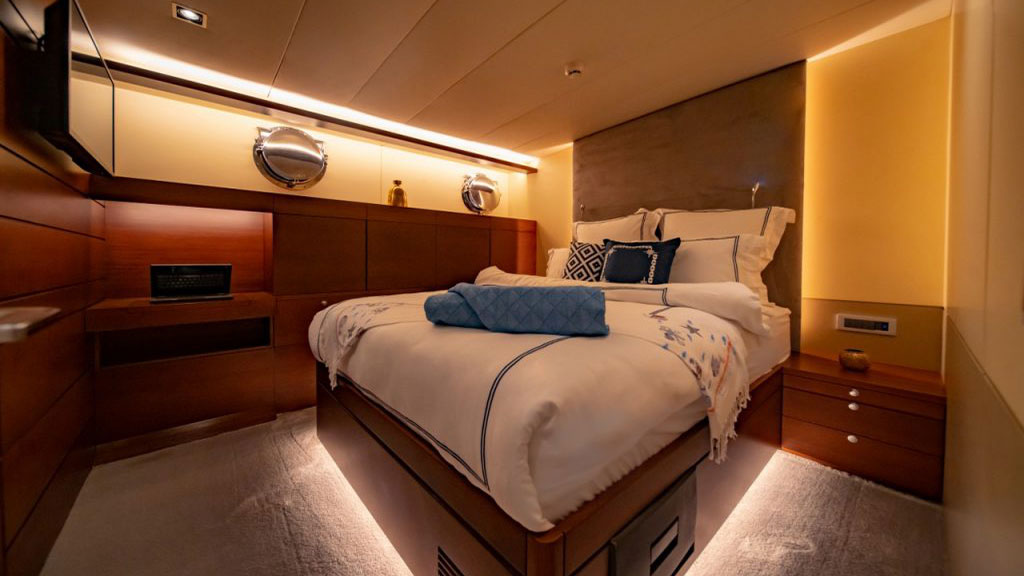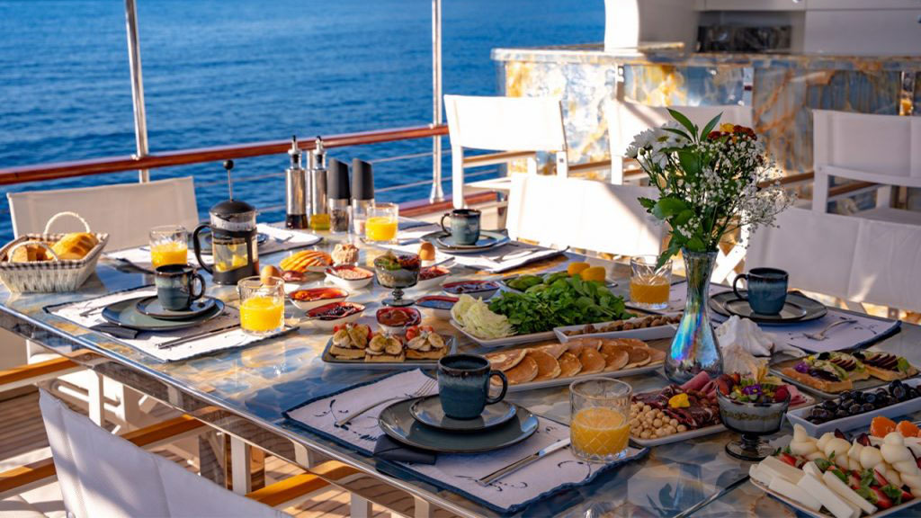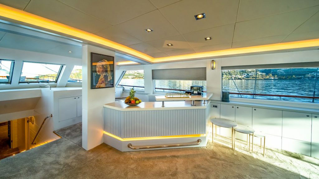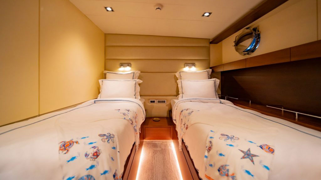 Built in 2005, 'Double Eagle' offers guest accommodation for up to 12 guests in 5 suites comprising a master suite, one double cabin and three twin cabins. She is also capable of carrying up to 6 crew onboard to ensure a relaxed luxury yacht charter experience. 'Double Eagle' boasts a wealth of convivial spaces, perfect for luxury yacht charters with families of friends, offering ample opportunities to kick back and relax, or enjoy the water on the yacht's array of water toys, the choice is yours.
