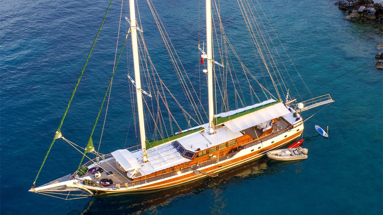 'Ecce Navigo' ( Latin; Here I Sail ). She was designed to offer the comfort and charm of a traditional Turkish gulet, while its high-performance rig and sails deliver a superior sailing experience. Three master cabins and two double cabins, each with its own en-suite bathroom and adjustable air-conditioning, offer spacious and inviting accommodation for up to ten guests. A traditionally styled, 30-meter Schooner, launched in 1997, 'Ecce Navigo' was beautifully & significant refitted in 2023 with the latest naval Technologies. She is the perfect yacht for a family or a group of couples, as she easily accommodates a party of up to ten guests in five spacious cabins. Each cabin is finished to a very high standard, with individual music system, individually controllable air-conditioning and an en suite bathroom. The master cabin has its own entertainment system with television, DVD player, and CD player. Two twin cabins are located aft. Forward of the saloon is full-width two double master cabins, one of which is fitted with a separate entertainment system. The crew of 'Ecce Navigo' are courteous and professional and will do their utmost to assist you as you embark on a most wondrous and relaxing vacation in the Eastern Mediterranean.