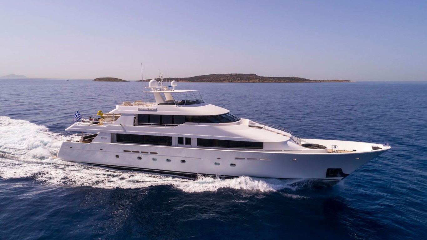 The unique 130’ Westport is the ideal yacht for welcoming 12 guests in 6 luxurious and comfortable staterooms. The tri deck yacht offers full entertainment, numerous water toys, and a magnificent holiday being one of the most renowned yachts in the East Med. Enjoy the custom made swimming platform inches away from the sea, the slide, and deck Jacuzzi for cocktails and ultimate leisure. Vast exterior areas for alfresco dining, and sunpads for lounging and creating an "Endless Summer" for all.