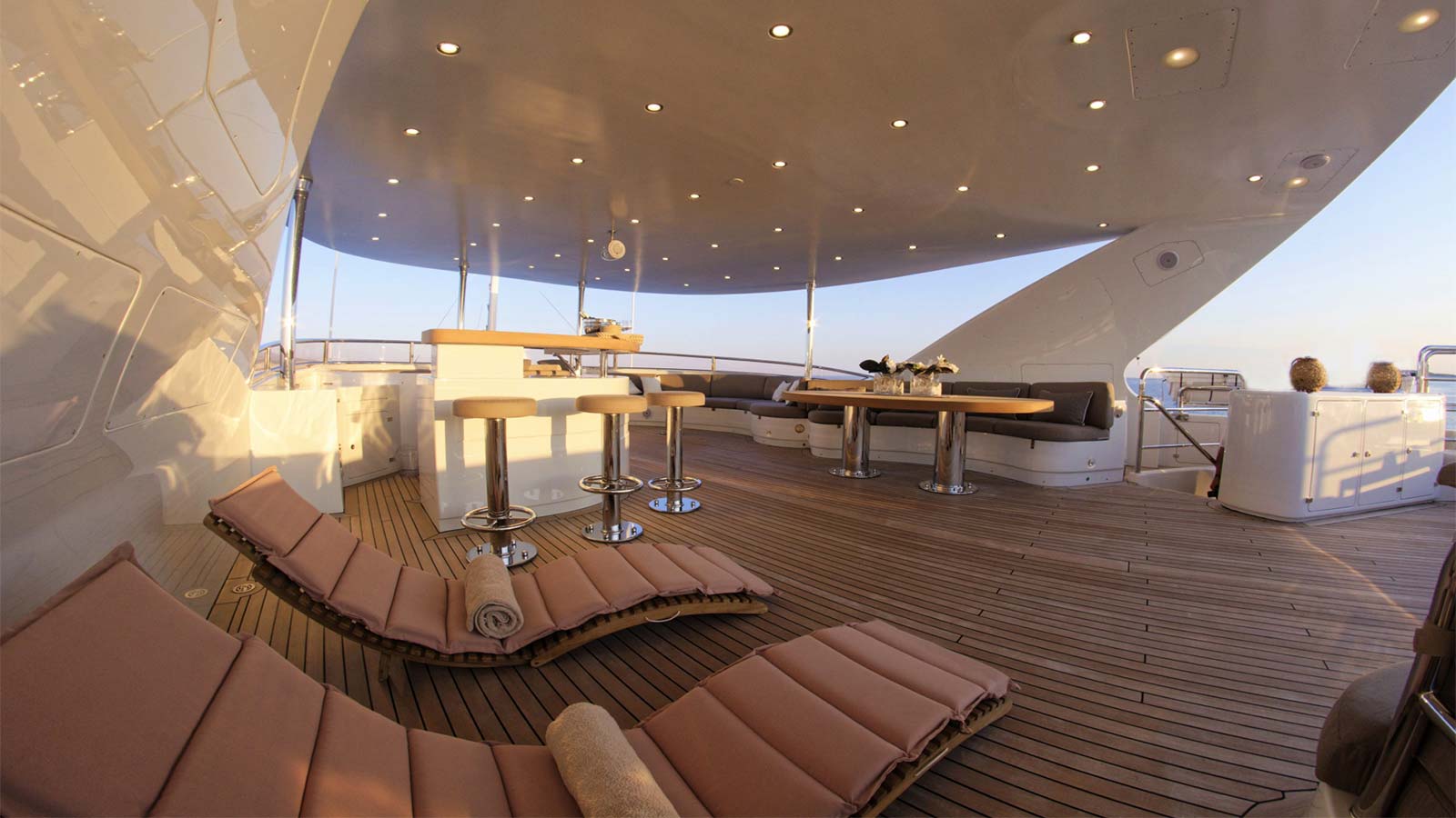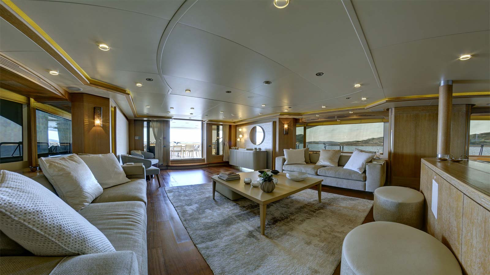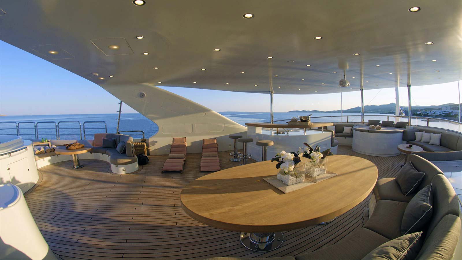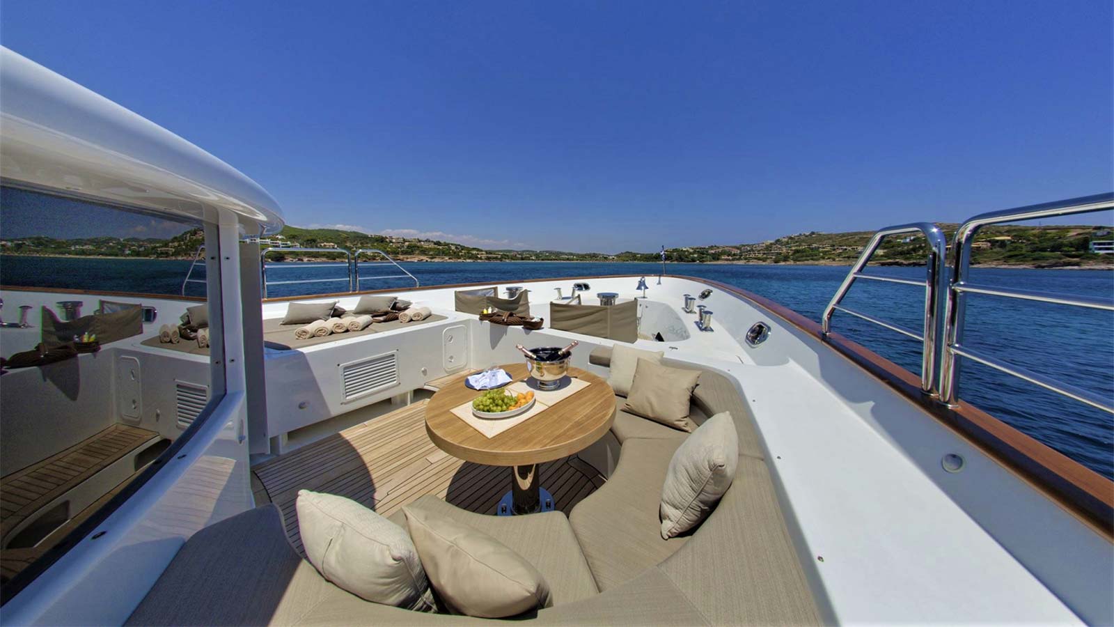 'Grande Amore' motor yacht built by the Italian shipyard Benetti is available for charter and offers guest accommodation for up to 12 guests in 6 suites comprising a master suite, one VIP cabin, two double cabins and two twin cabins. She is also 9 crew onboard to ensure a relaxed luxury yacht charter experience. Keeping comfortable and entertained on 'Grande Amore' is easy thanks to the available amenities, notably a dedicated library, where you can unwind in seclusion. Visit the sauna and disconnect in peace and quiet or head to the beach club and take advantage of indoor-outdoor living and entertaining. You can visit the well-equipped gym so that you can keep up with your fitness routine at sea or elsewhere, retreat to the deck jacuzzi and soak up the scenery.