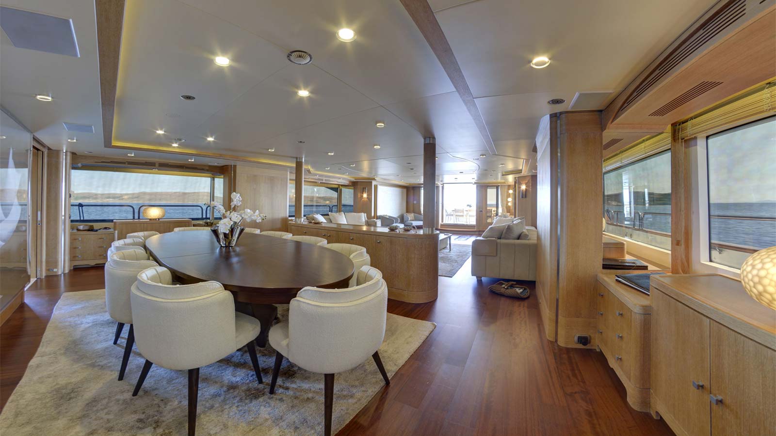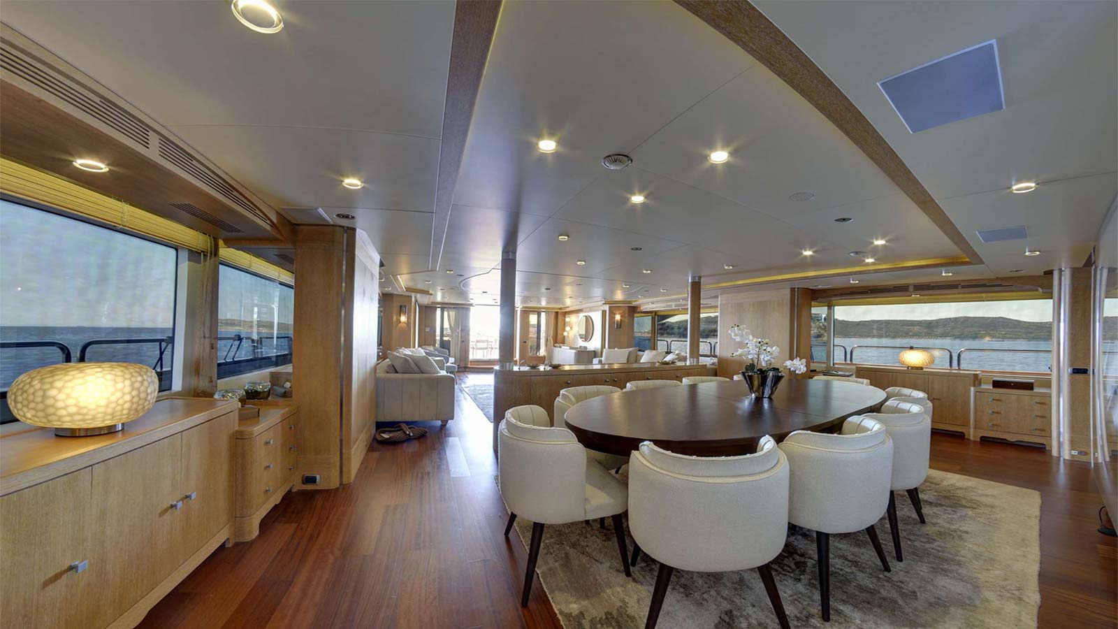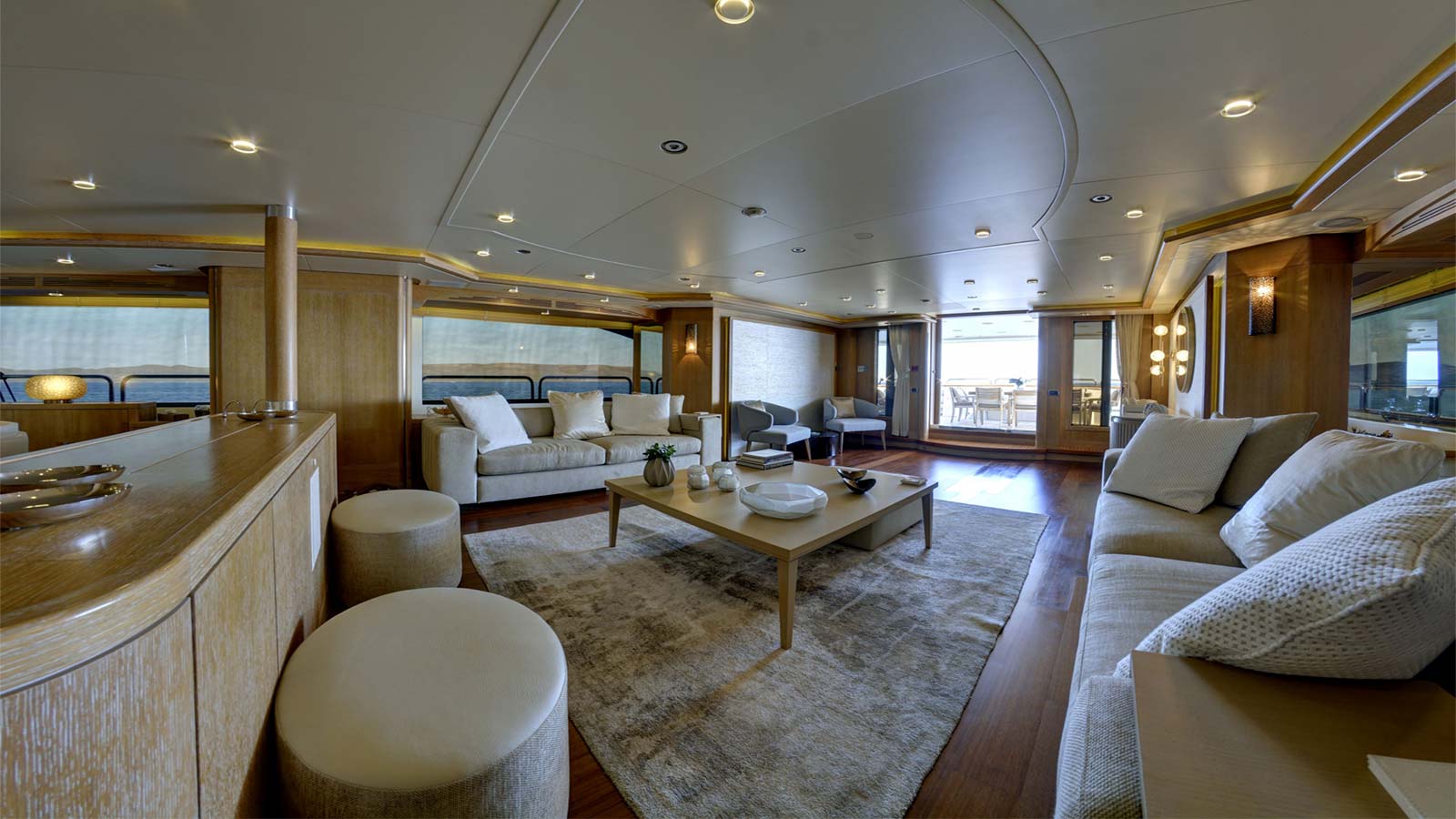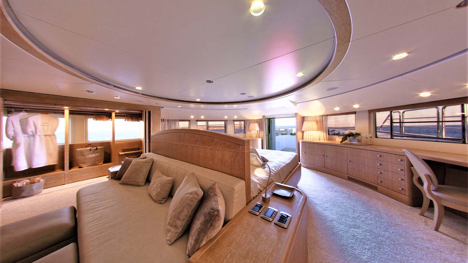 'Grande Amore' motor yacht built by the Italian shipyard Benetti is available for charter and offers guest accommodation for up to 12 guests in 6 suites comprising a master suite, one VIP cabin, two double cabins and two twin cabins. She is also 9 crew onboard to ensure a relaxed luxury yacht charter experience. Keeping comfortable and entertained on 'Grande Amore' is easy thanks to the available amenities, notably a dedicated library, where you can unwind in seclusion. Visit the sauna and disconnect in peace and quiet or head to the beach club and take advantage of indoor-outdoor living and entertaining. You can visit the well-equipped gym so that you can keep up with your fitness routine at sea or elsewhere, retreat to the deck jacuzzi and soak up the scenery.