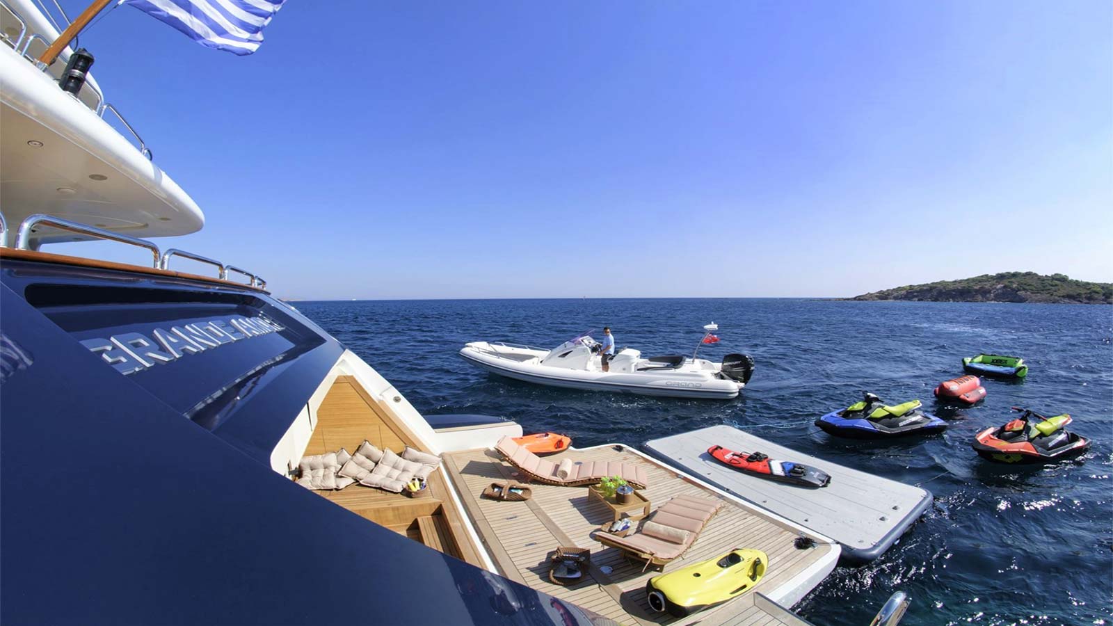 - TOYS : Seabobs, Jetsurf, Jet-Ski, Paddleboards, Flyboard, Inflatable Kayaks, Donuts, Water-Skis, Wake Boards, Kneeboard, Fishing and Snorkelling Gear