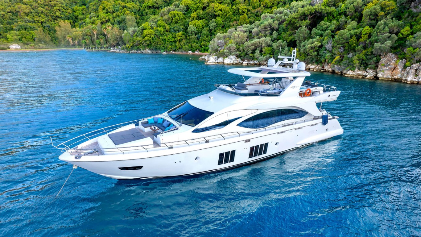 Luxury yacht 'Hubo' is a 25.7 m Azimut yacht built in 2015 and featuring fabulous charter amenities including deck jacuzzi and and offers luxurious accommodation for up to eight guests in four suites. These four staterooms including a spacious master, a VIP and two doubles, one of them is convertible. Her generous full-beam master stateroom on the lower deck is impressively split and includes a walk-in wardrobe, dressing table and en suite bathroom. There are 4 crew membrs onboard to ensure guest comfort and safety. She has been kept in excellent condition since new by her fantastic crew. 'Hubo' offers the ultimate fun with a large selection of water toys. Motor yacht 'Hubo' has an array of charter-focused amenities to ensure a memorable experience onboard whatever the destination.