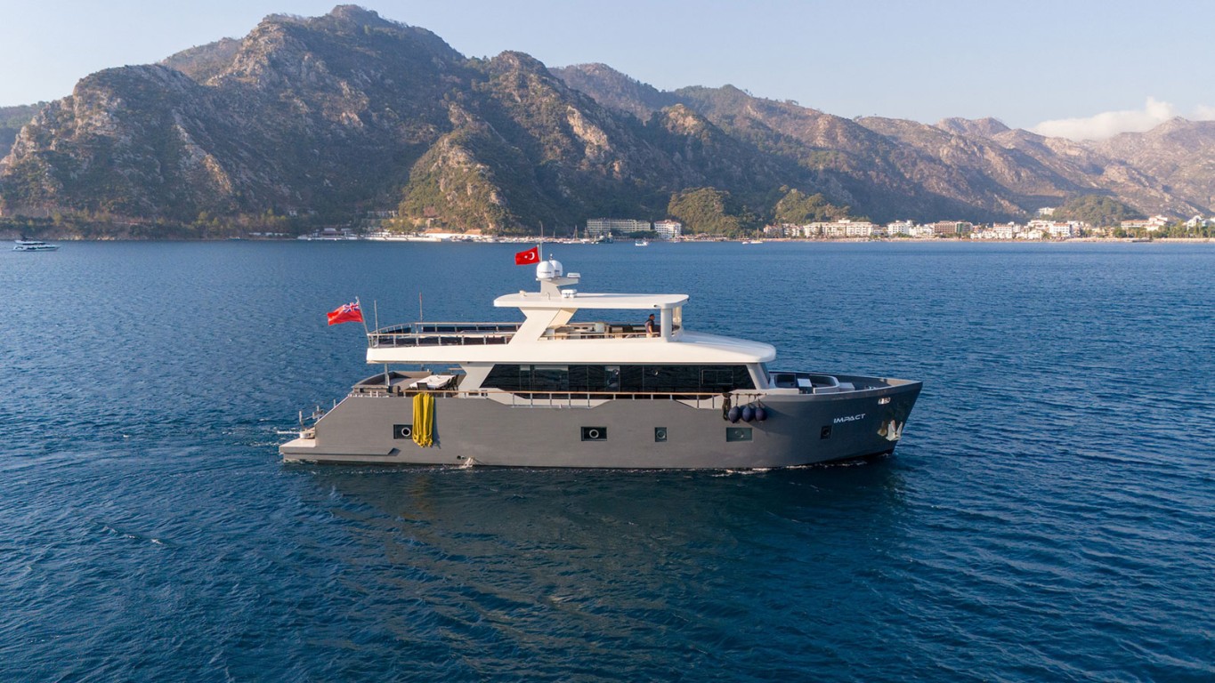 Motor yacht 'Impact' is a 24m custom built trawler yacht launched in Turkey in 2023. Her solid and stable features ensure a smooth charter for guests while the interior is contemporary and comfortable. Up to ten guests can be accommodated in five suites including a main deck master suite. 'Impact' offers the ideal combination of adventure and relaxation, providing endless opportunities to discover Turkey’s coastal beauty while enjoying first-class service from her dedicated crew. The yacht presents a minimal interior styling and offers a spacious sundeck equipped with sun-beds, sofa lounger, bar and dinning table.