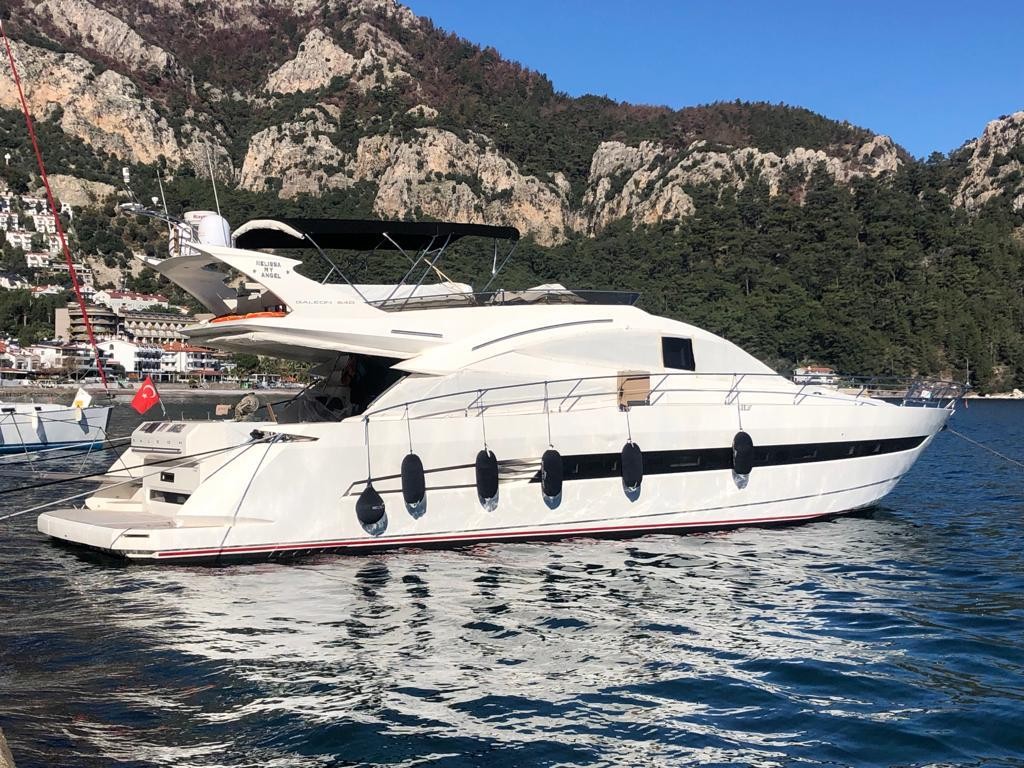 'Melissa My Angel', Galeon 640 Fly 4-cabin motor yacht was built in 2011. She can accommodate up to 8 people in 3 double cabins and 1 double cabin with a bunk bed. The yacht has 2 MAN engines, each with an output of 1221 hp (898 kW). The cruising speed of the vessel is 20 knots. Boat equipment features radar, generator, salon GPS plotter, BBQ and bimini. It also boasts flat screen TV, air conditioning, audio system, DVD player and outside speakers. The fully-equipped galley includes a microwave, ice maker, freezer, coffee machine and oven. On each route, you can visit crystal clear sea, beaches away from crowds, coves hidden in silence, and perhaps encounter a nature you have only seen in pictures before.