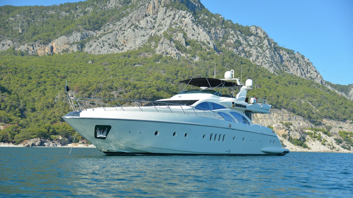 Refit in 2022, 'Obsidian' is a stylish Azimut 98 Leonardo that accommodates 8 guests in 4 cabins. She is one of the top choices for exploring this section of the Turkish Riviera. There is plenty of water toys and games onboard to keep guests busy and entertained. The saloon design is simply perfect for allowing guests to make full use of indoor facilities while spending time on the aft deck. There is a deck jacuzzi and bar on the flybridge for taking in panoramic views while sipping on your favourite cocktail. 'Obsidian's steady crew of 5 with years of experience under their belt offer excellent service and are multilingual and can speak English, Russian, German, Spanish, Italian and Turkish.
