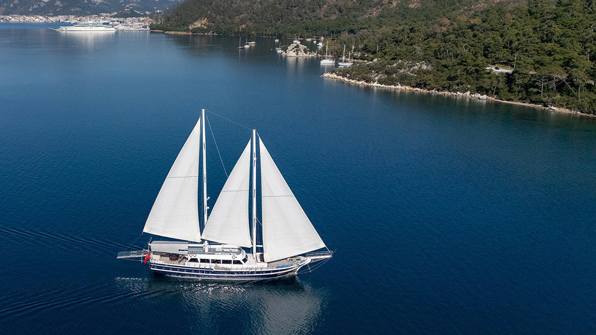 'Saraylı 1' is a 35-meter luxury gulet with a beam of 7.70 meters, built in 2008. Designed for comfort and elegance, she features five well-appointed cabins, two master cabins with triple beds and three double cabins accommodating up to 12 guests. Her experienced five-member crew is dedicated to providing a seamless and enjoyable sailing experience. With a spacious flat deck design, 'Saraylı 1' offers generous living areas, perfect for relaxation and socializing at sea. With her experienced 5-member crew and spacious living areas, 'Saraylı 1' offers guests a relaxing and enjoyable vacation. The water sports equipment and flybridge sunbathing area provide plenty of opportunities for fun at sea.