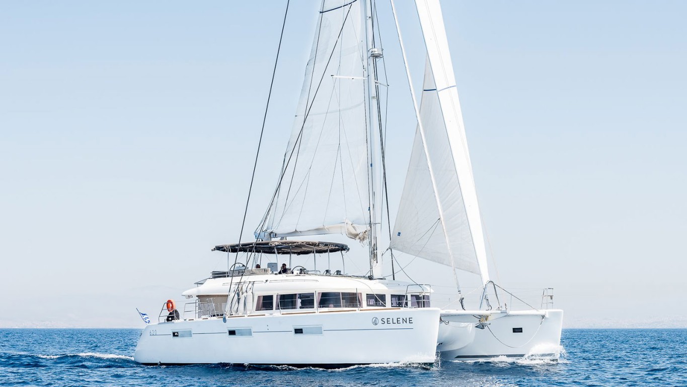 Spacious and luxurious, the 62ft (19m) Lagoon catamaran SELENE is a brilliant choice for your charter in the Greek Islands, with elegant amenities onboard for up to 10 charter guests. She accommodates 10 guests in five queen bed cabins all with private ensuites, ample storage, windows and hatches for natural light and ocean views. The master cabin features a queen bed, desk/vanity, and private access to the aft deck. SELENE’S three professional charter crew are renowned for their dedication, 5-star service, local knowledge and delectable cuisine to make every charter sensational.
