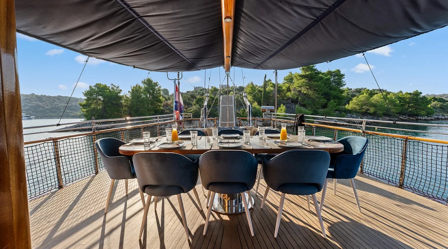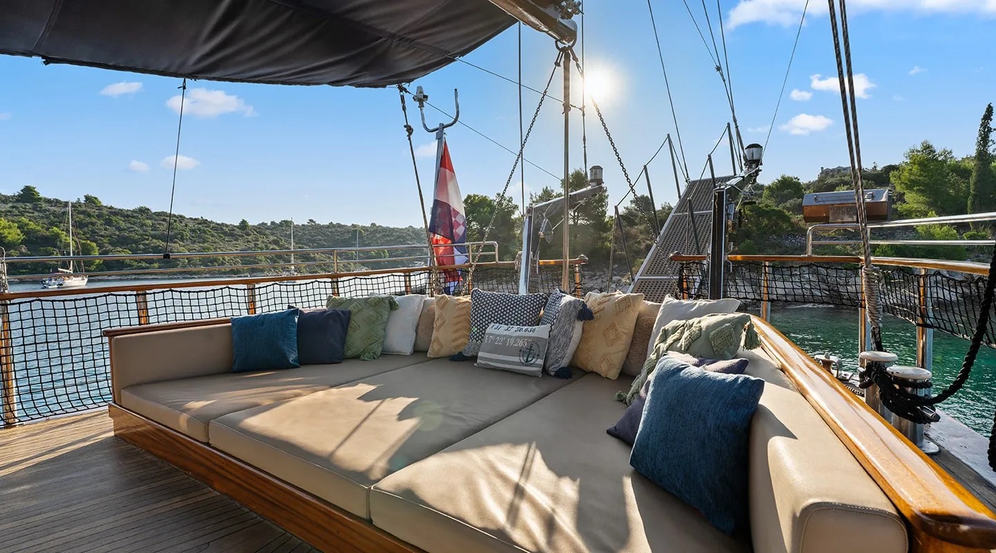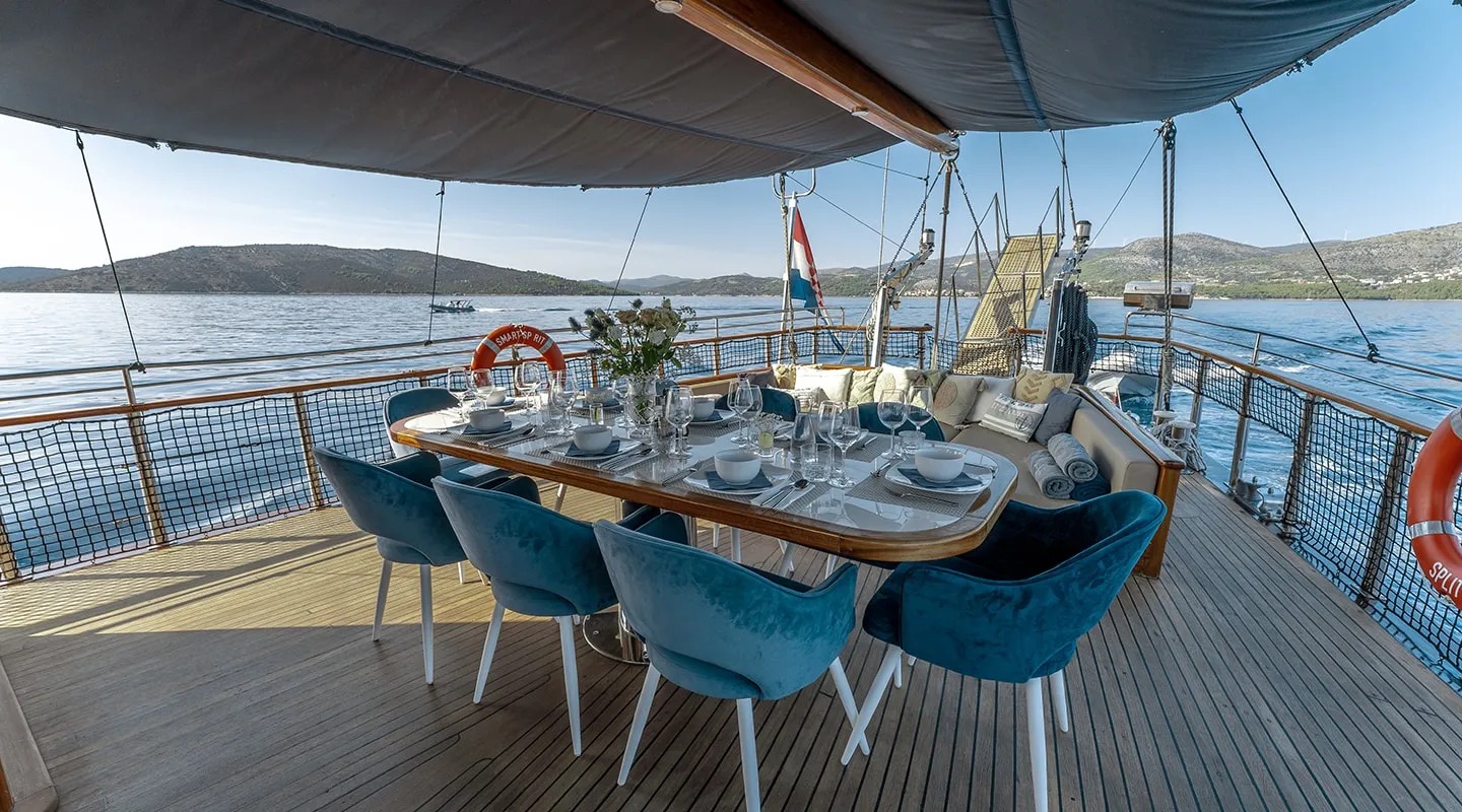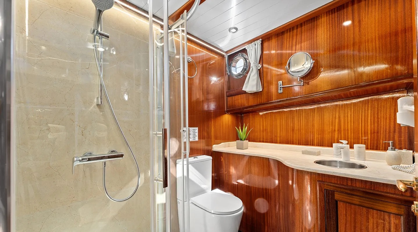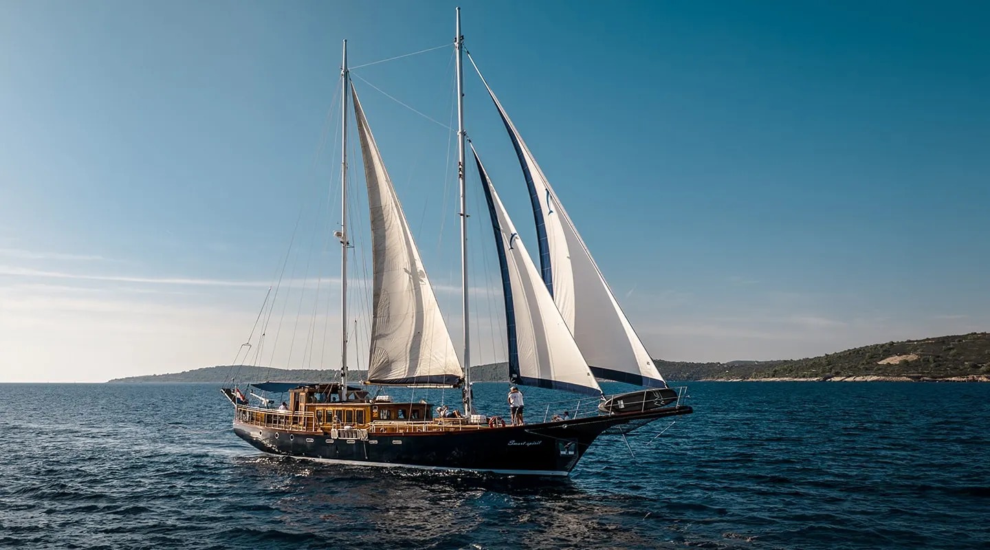 Sailing yacht 'Smart Spirit 1' has a tasteful traditional décor boasting fine mahogany panels, elegant soft furnishings and classy fittings. The salon and dining area in the raised deckhouse offer optimum views and ample natural light. It is the ideal social point with a formal dining table, lounge seating and TV entertainment. Forward of the salon there are the guest cabins.