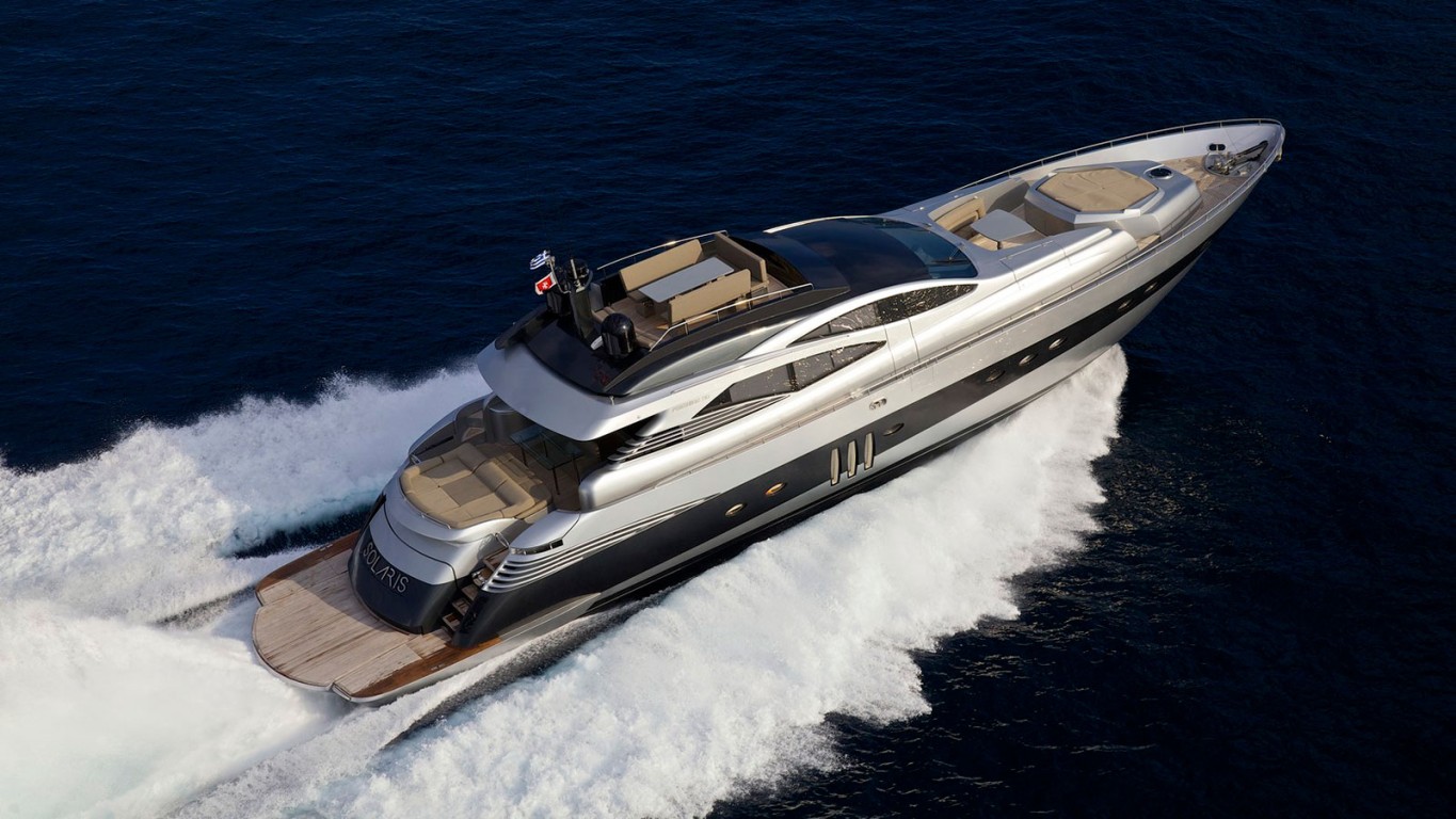 "Solaris" is a 90′ Pershing distinguished for its modern lines and fast speed, reaching up to 34 knots at cruising speed. "Solaris" accommodates up to 10 guests in 4 staterooms, with a modern and minimal interior, spacious areas, and light earth color tones. All exterior decks include large sunpads and two tables for alfresco dining. Equipped with state of the art entertainment and water toys, "Solaris" is a perfect choice for an active and spectacular cruise.