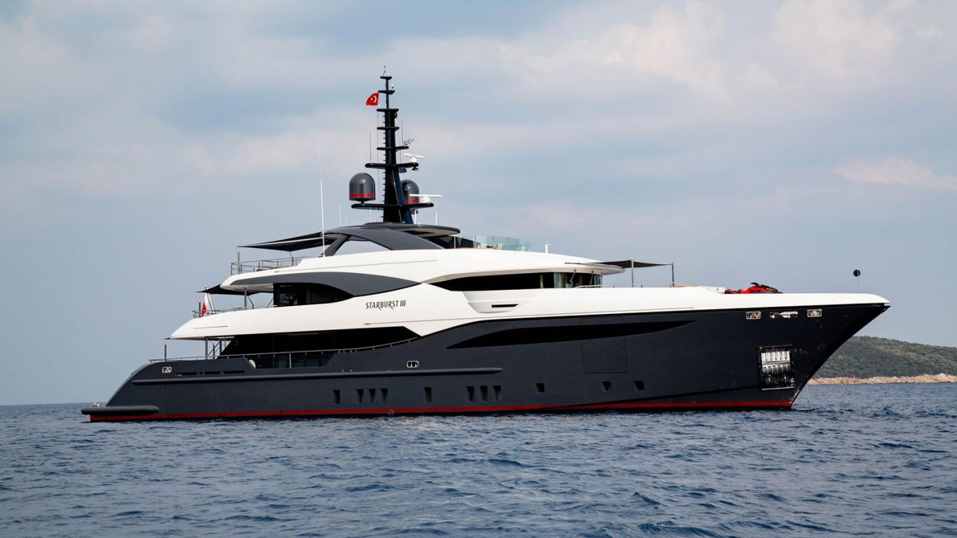 The 47m motor yacht 'Starburst III', built by Bilgin Yachts in 2017 and refitted in 2019, is a striking and modern vessel offering an unforgettable charter experience. Showcasing sleek exterior lines by Unique Yacht Design and a stylish interior by H2 Yacht Design, 'Starburst III' seamlessly blends luxury, comfort, and performance. Accommodating up to 10 guests in 5 lavish cabins, she features a full-beam master suite on the main deck with panoramic views, two VIP staterooms, and two twin cabins on the lower deck, each with en-suite facilities. A crew of 9 experienced professionals ensures personalized and discreet service at all times. Her expansive deck areas include a sun deck jacuzzi, bar, al fresco dining, and multiple lounging zones ideal for entertaining or relaxing under the sun. The beach club offers direct access to the sea, and a wide selection of water toys guarantees endless fun on the water. Equipped with stabilizers for added comfort both at anchor and underway, 'Starburst III' delivers a smooth and luxurious cruising experience. Whether you're planning a Mediterranean summer escape or a glamorous island-hopping adventure, 'Starburst III' is the perfect charter yacht to create unforgettable memories.