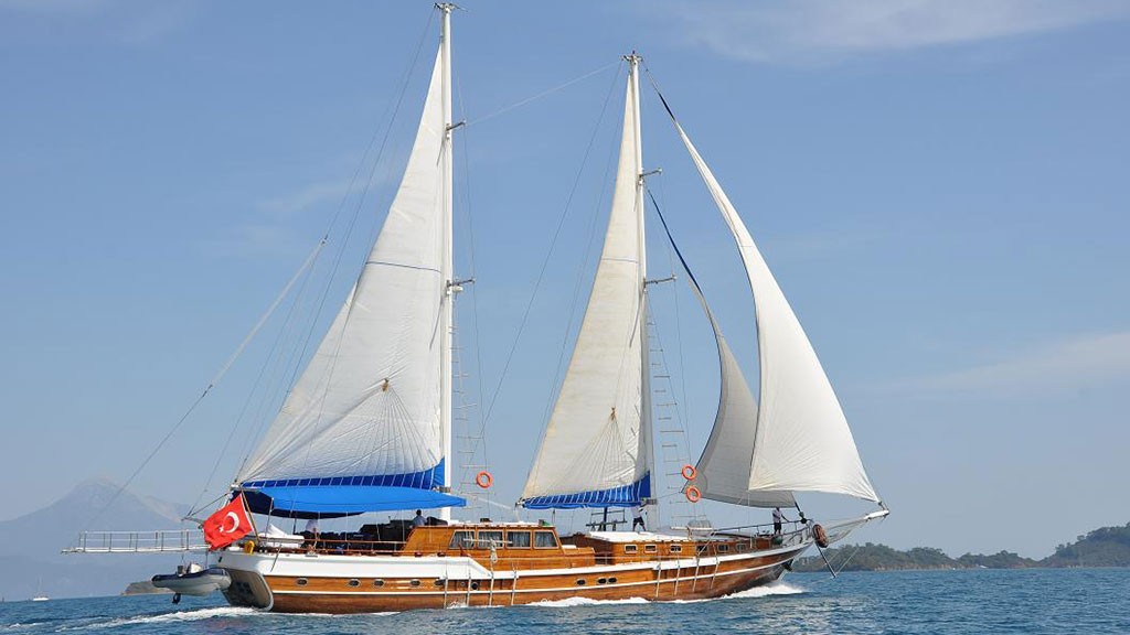 'Sunworld IX' yacht is a 30 m. Air-conditioned, traditional wooden gulet. She was specially designed for the charter market. She offers accommodation for up to 18 guests in four double and four double bed + single bed cabins. Each cabin has its own private WC and shower facility including a separately enclosed shower unit.