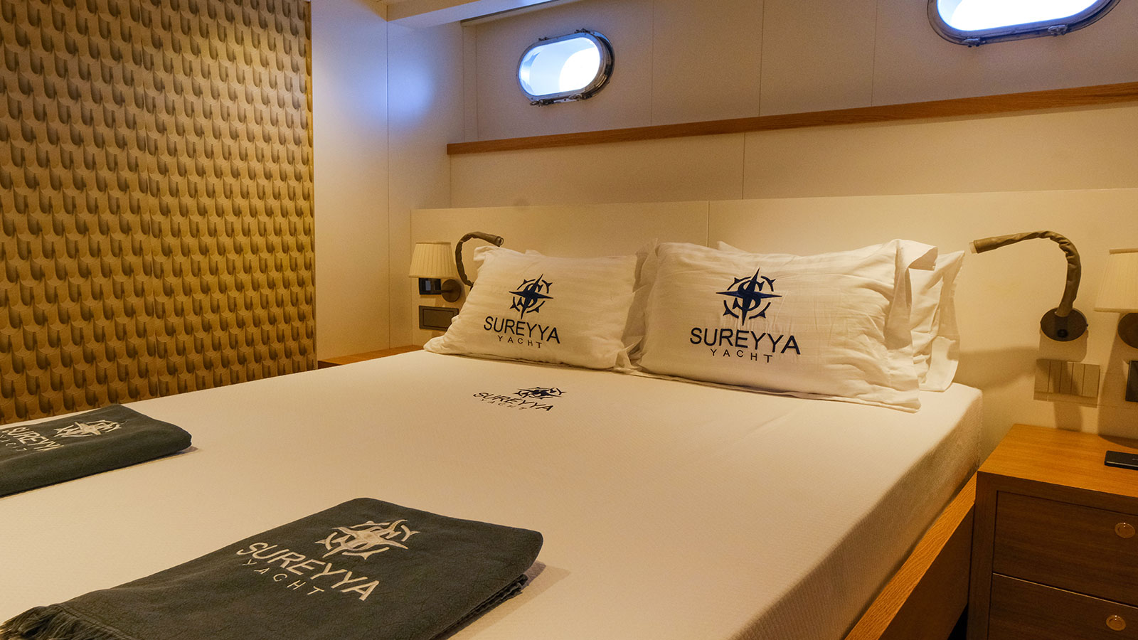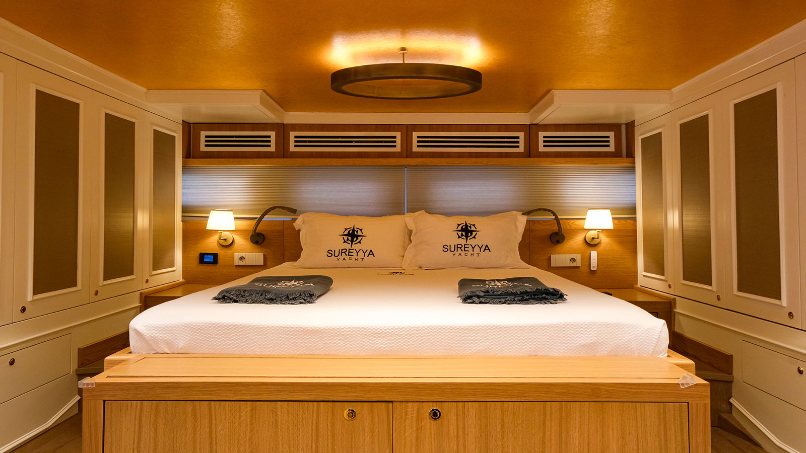 'Sureyya' is a 33-meter motor sailer that has completely rebuilt in 2024,only the hull was retained while the rest of the yacht was entirely reimaginedwith a modern philosophy. Every detail of this yacht has been meticulouslycrafted to offer an unforgettable experience for its guests.The spacious and elegant interior can accommodate up to 12 guests in 5 luxurious cabins. The layout includes 1 master suite, 3 double cabins (one ofwhich can be converted into an office), and 1 bunk cabin with 4 beds, ideal fora nanny or bodyguard. 'Sureyya' offers the highest level of service with its 7 permanent crew members. This extraordinary yacht, with its sophisticated design and luxuriousfacilities, is the perfect choice for those seeking the ultimate holiday experience at sea.