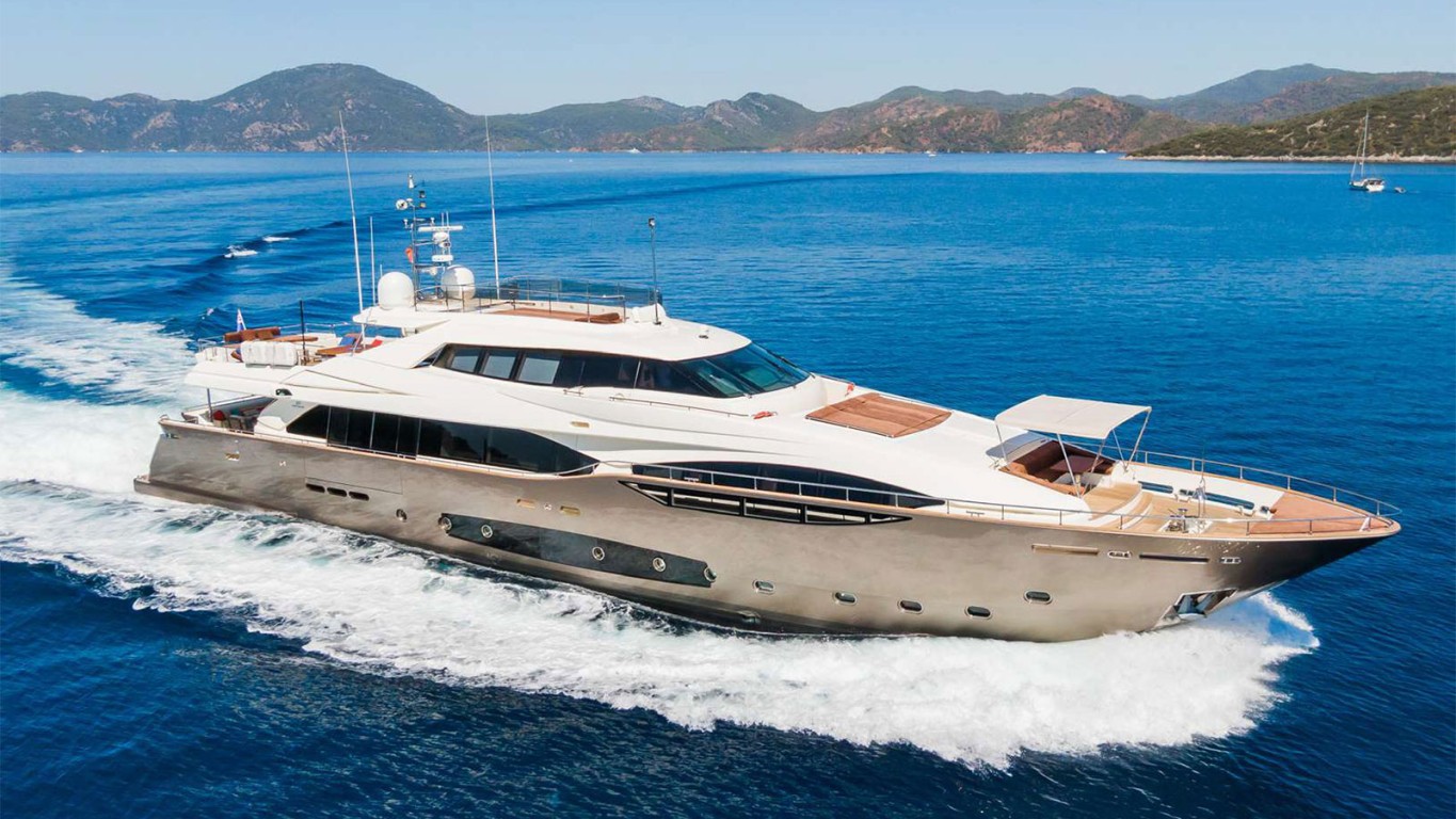 'Thalysaa' is a 37.8m beautiful planing motor yacht built by Italian shipyard Custom Line (Ferretti Group) in 2012. With both the exterior and interior penned by renowned design house Zuccon International Project she offers guests a contemporary and stylish living space with ample room for relaxation and comfort. 'Thalysaa' is filled with sunlight through the expansive windows on the upper deck and fold down balconies in the main saloon, with natural woods and warm tones continuing to illuminate the fresh and airy interior. Welcoming 12 guests in 5 staterooms, she boasts a full-beam master on the main deck, with the lower deck offering two double staterooms and two twin staterooms each with a pullman bed, all meticulously maintained with en-suites and equipped with the latest technologies and modern amenities. Uncommon for her size, 'Thalysaa' is home to a Fun-Air inflatable slide as well as a whole host of other exhilarating water toys including a jet-ski, trampolines and a set of wakeboards. For guests wishing to take it easy they can find themselves floating on a lilo or exploring undiscovered coves by kayak or stand-up paddle board. As the sun sets, charterers can watch the horizon from the main deck with an aperitif and a selection of canapés before heading inside for a formal dinner, or perhaps retreat to the upper deck to make use of the state-of-the-art grill for a more casual barbecue experience. No matter whether you are an adventure seeker, or looking for a more laid back experience, 'Thalysaa's attentive crew of 7 will ensure your every wish is met.