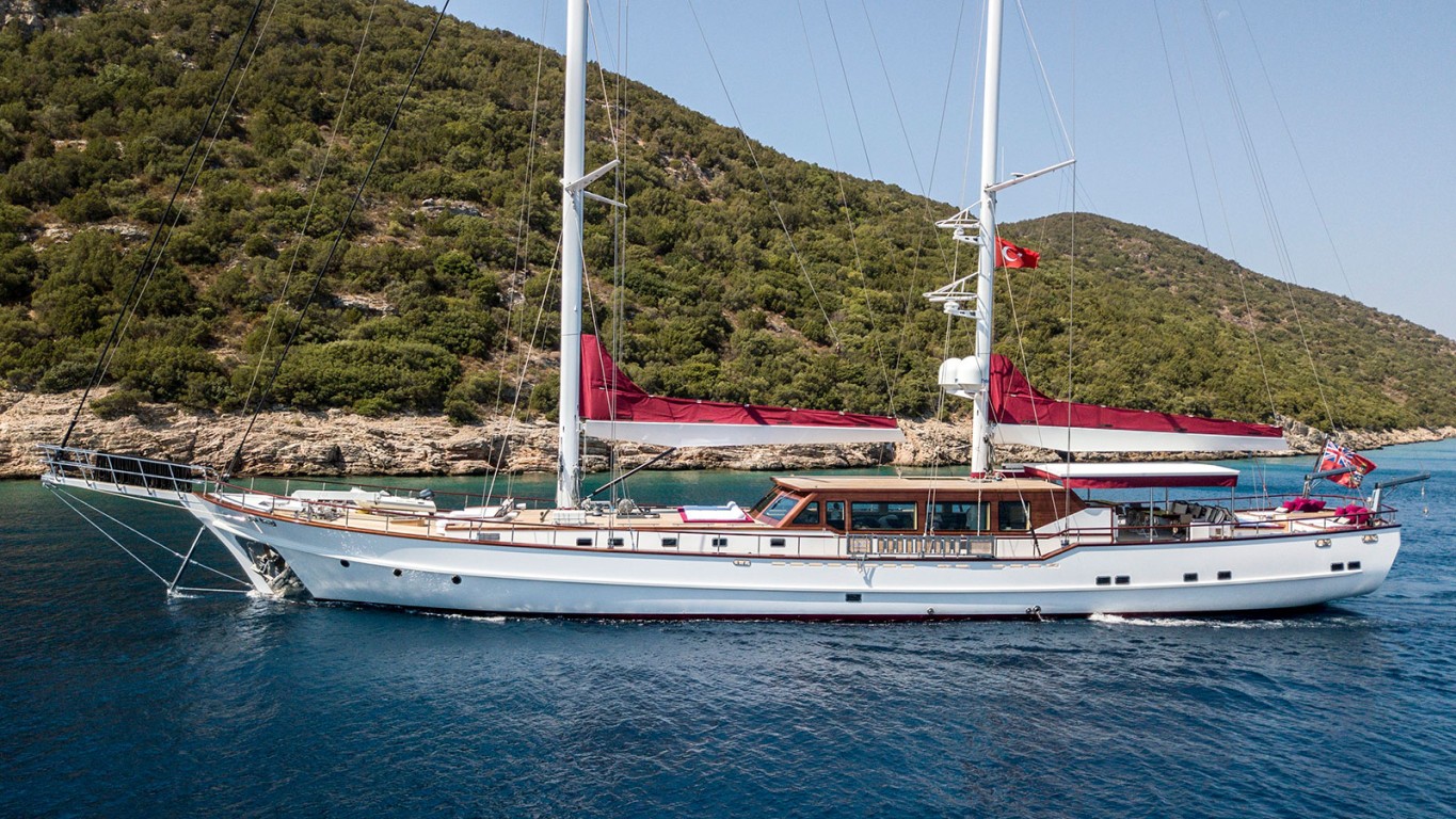 Inspired by traditional gulets, luxury yacht That's Amore was built in 2023 as a beautiful 42.90m motor sailer. That's Amore offers guest accommodation for up to 12 guests in 6 suites comprising four double cabins and two twin cabins. The guests will be looked after by a dedicated crew of six. The contemporary interior blends light wood finishes and neutral furnishings with bright signature highlights. The main salon is filled with light thanks to the surrounding windows and is configured with a bar aft, dining setting and lounge forward and helm controls further forward. On deck, expansive teak-lined areas await guests. These spaces, ideal for sunbathing, outdoor dining, and socializing, will captivate sea lovers. Comfortable sun pads on the foredeck offer a perfect spot to relax in the sea breeze.