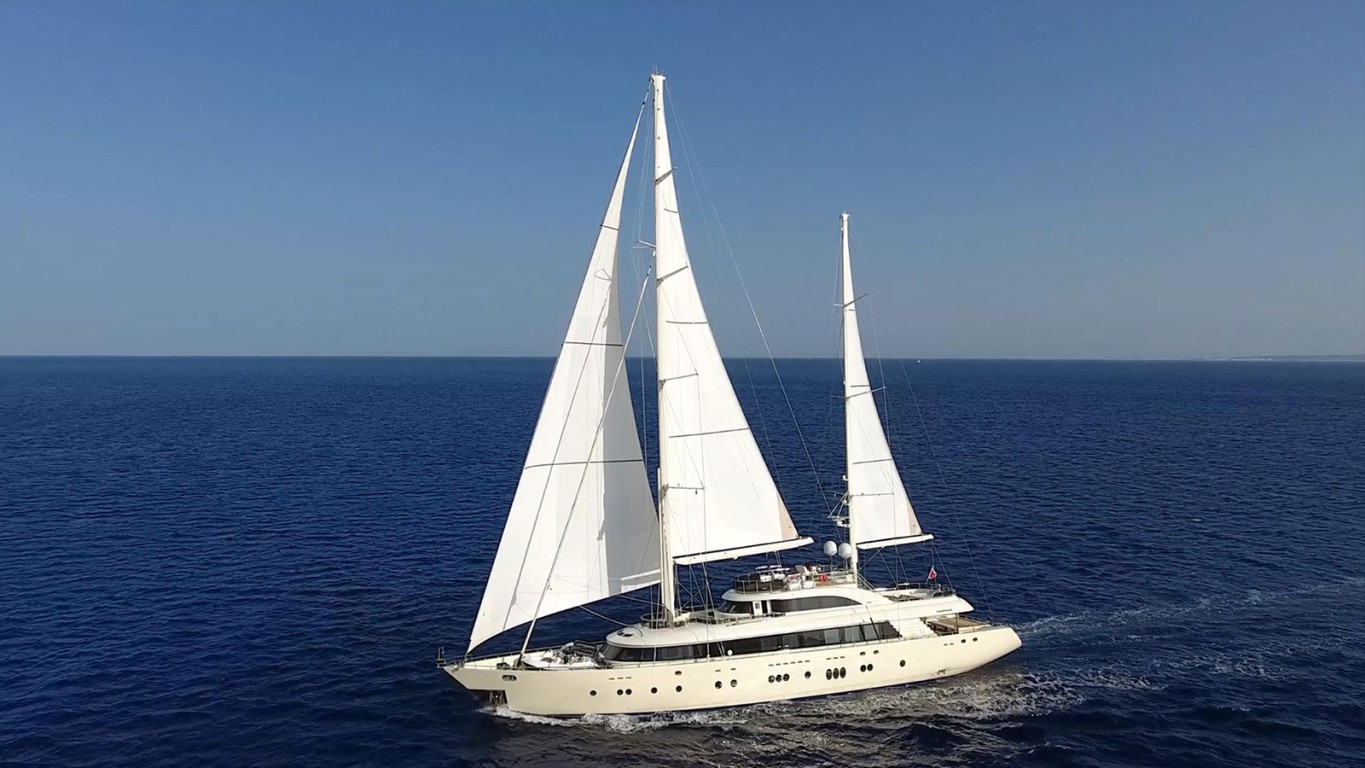 Built in epoxy laminated wood by Turkish yard Yildizlar to a design by Fuat Turan and RINA classed, she was delivered in 2017. A comfortable interior by Aldo Viani can accommodate up to 12 guests in six staterooms comprising a master suite, two VIP suites, two twin and one double cabin. All cabins have en suite bathroom facilities and audio/visual systems connected to a central server delivering on-demand video and audio with a library of over 1,000 films and 800 albums. In addition, there are quarters for up to ten crew members aboard. Outdoors, she offers sunbathing platforms, a Jacuzzi and a bar on the top deck to offer many alternatives for al fresco entertaining and dining. Two aluminium masts with in-mast furling and winches give her a relaxed performance under sail, while under power twin 1,205hp MTU diesel engines give her a cruising range of 3,050 nautical miles. Please contact us for more information.