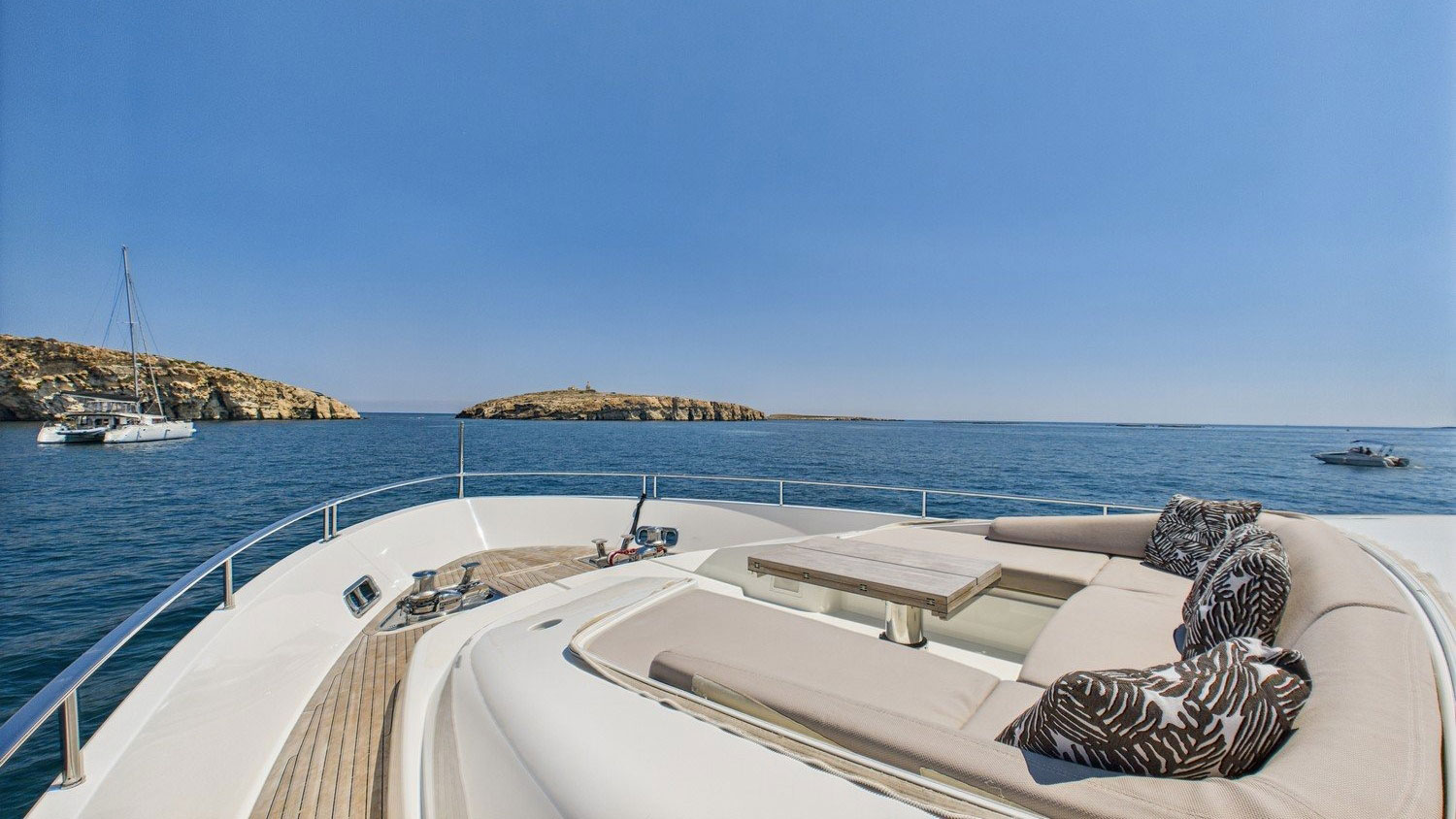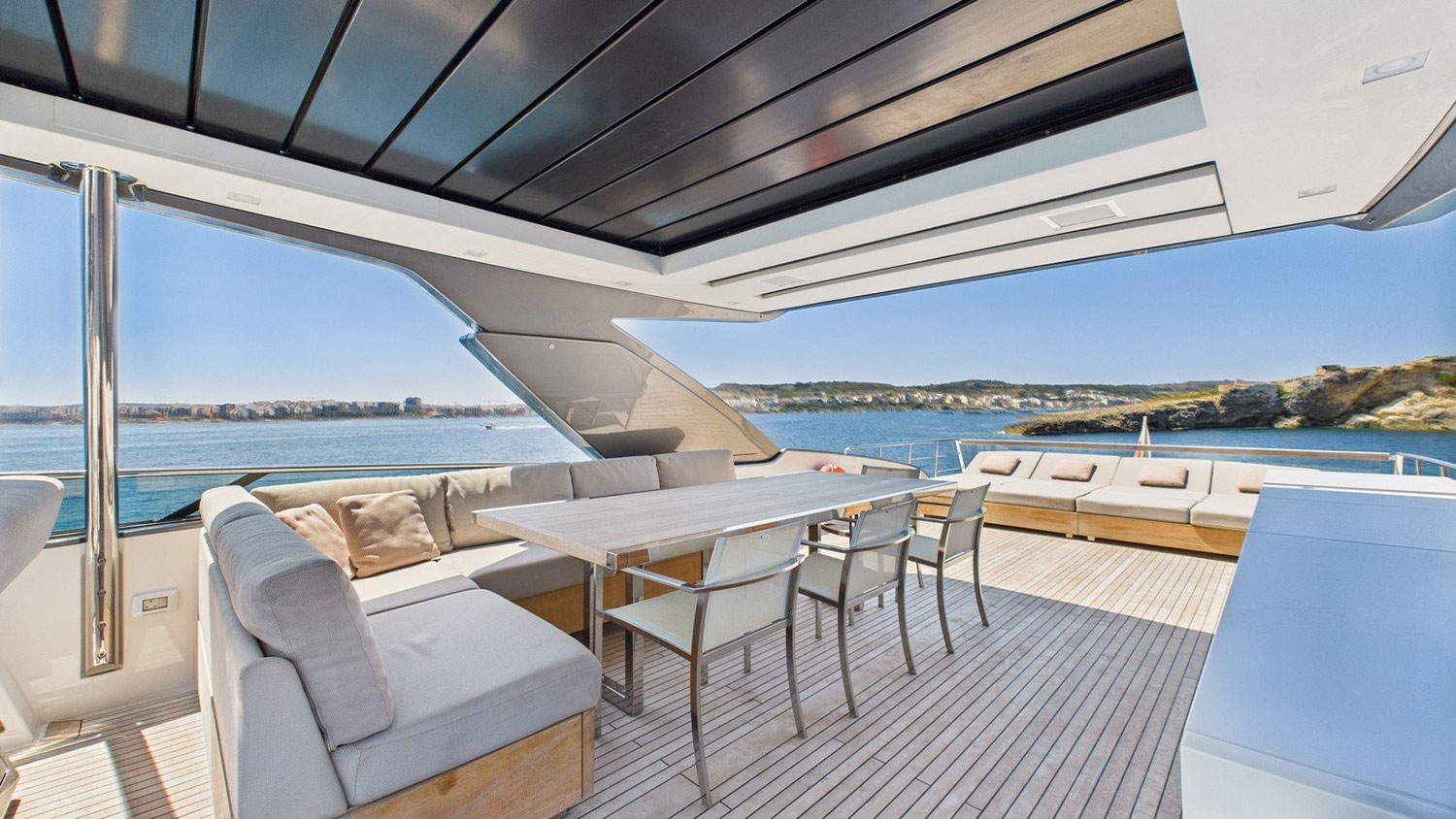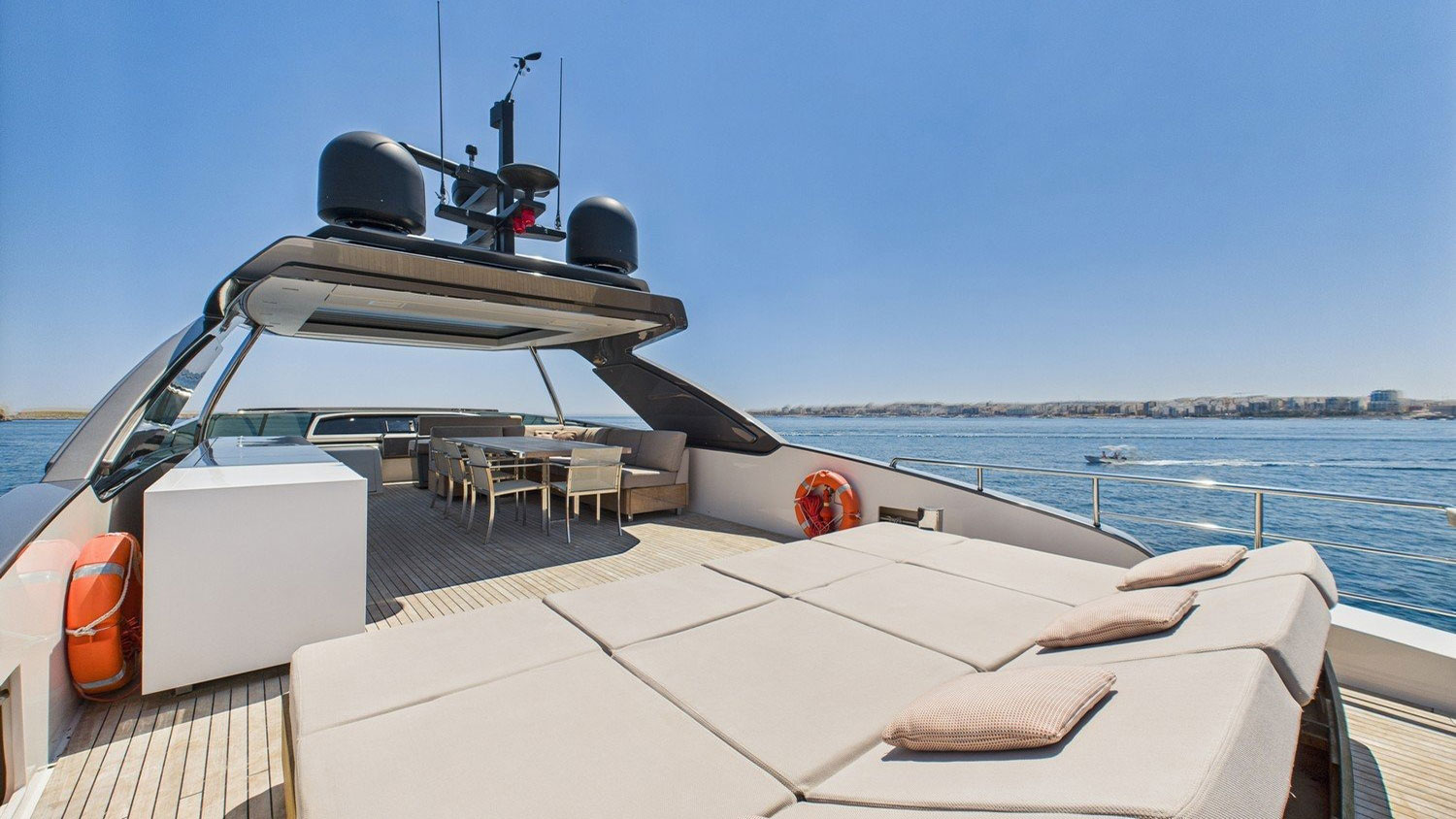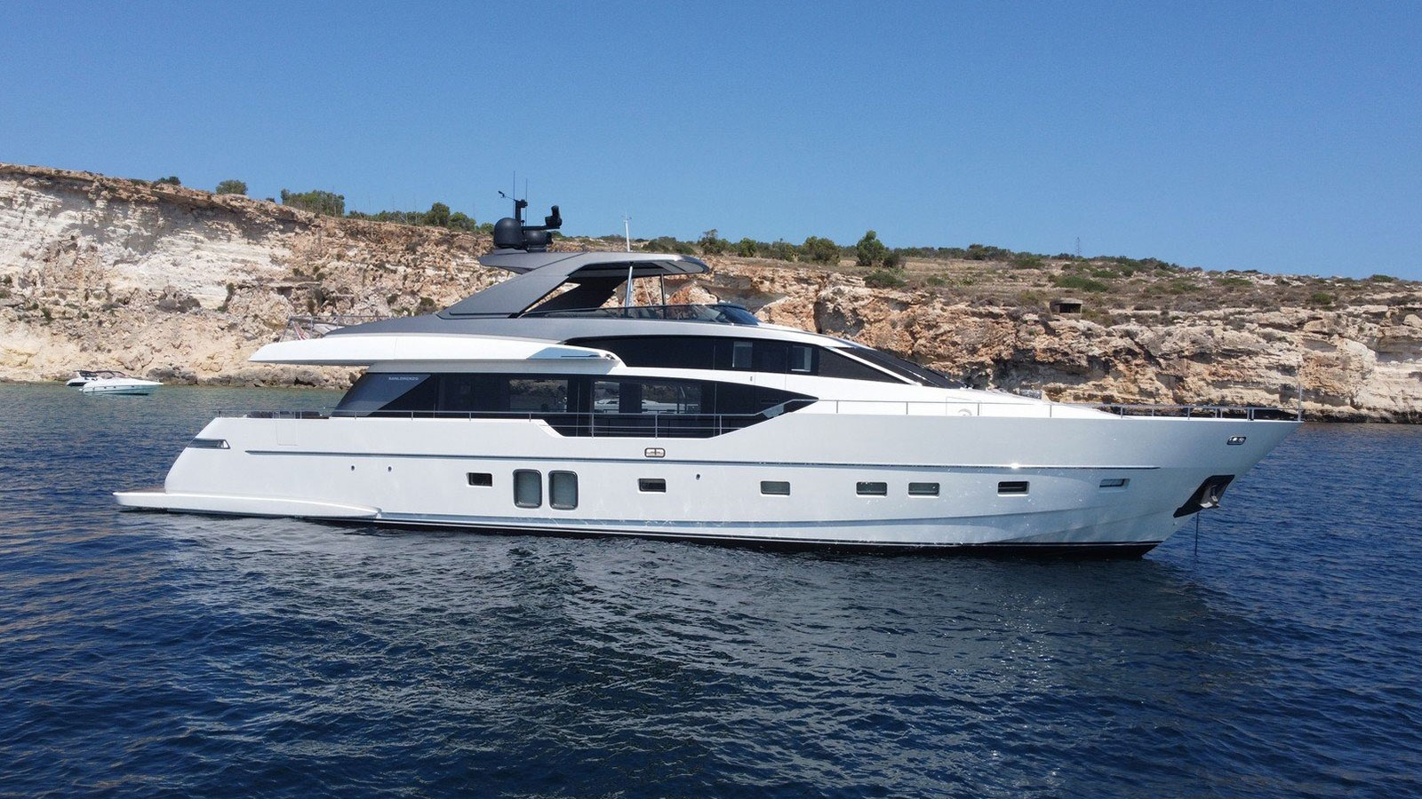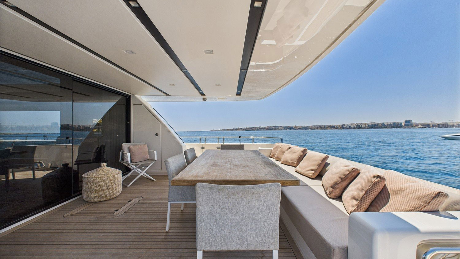 The yacht is a stunning Sanlorenzo SL86 delivered in 2018. This 27-meter yacht combines timeless elegance with cutting-edge innovation, delivering outstanding comfort and performance for unforgettable cruises in the Mediterranean. She is powered by twin 1948 Hp MTU diesel engines, which give her a cruising speed of 26 knots and a top speed of 32 knots.The new 27m motoryacht is an Officina Italian Design collaboration, its innovative features are set to establish a new standard for the entire Sanlorenzo range of planing hull yachts. The bow is now a living space with sofas, table, sunbathing cushions, and a removable sail cover awning. Up top, the flybridge is expanded into a generous sunbathing and entertaining area, thanks to a tender garage at the transom and hydraulic lift swim platform. Please contact us for more information.