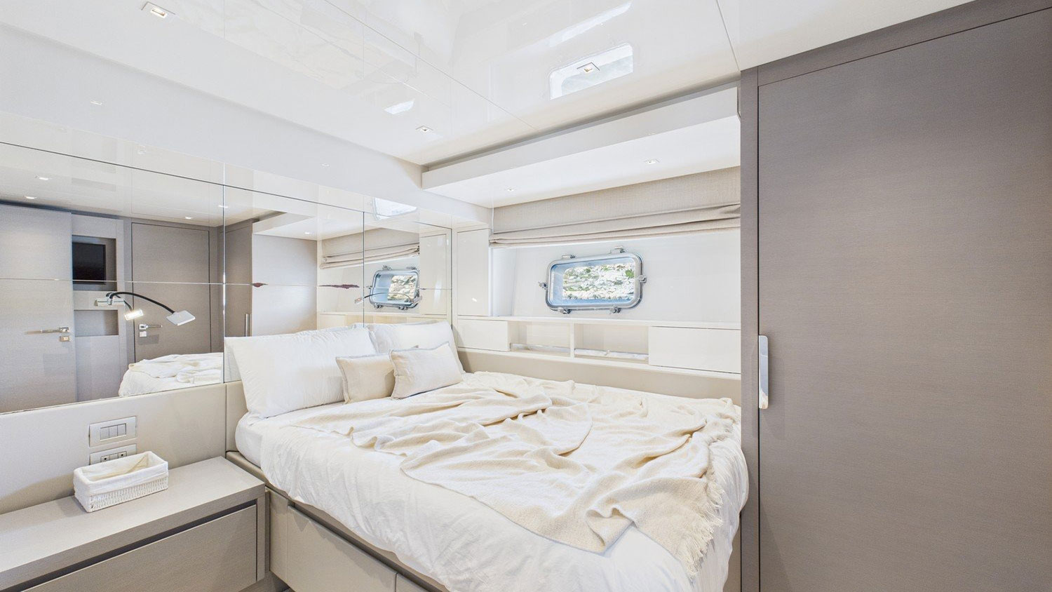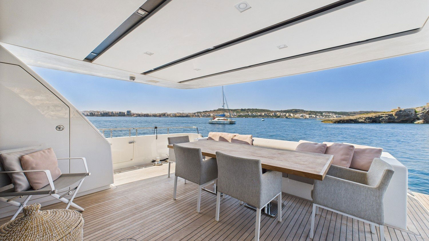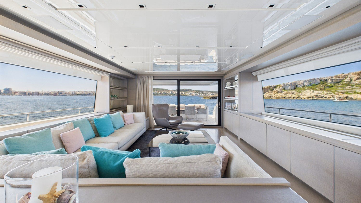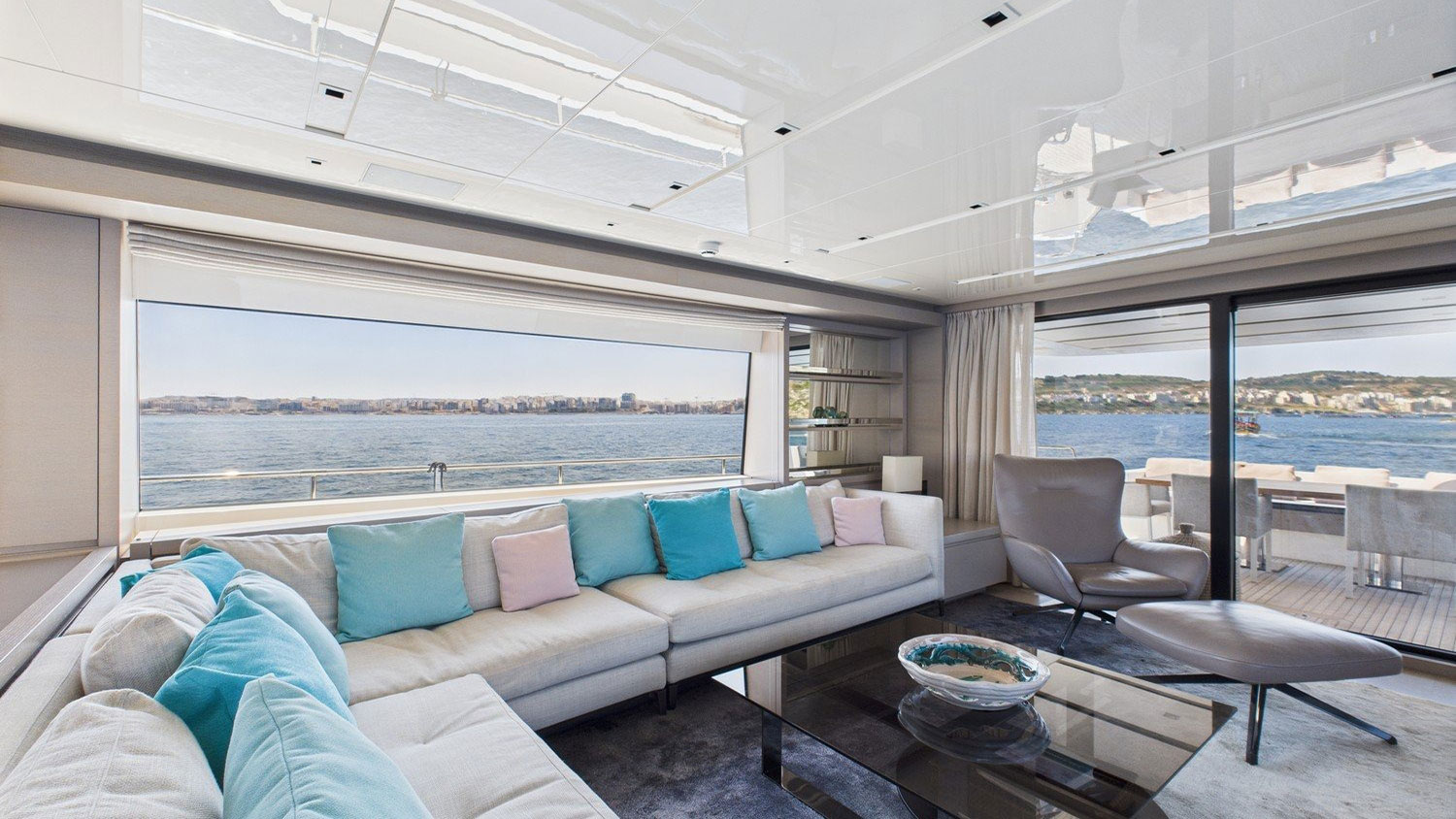 The yacht is a stunning Sanlorenzo SL86 delivered in 2018. This 27-meter yacht combines timeless elegance with cutting-edge innovation, delivering outstanding comfort and performance for unforgettable cruises in the Mediterranean. She is powered by twin 1948 Hp MTU diesel engines, which give her a cruising speed of 26 knots and a top speed of 32 knots.The new 27m motoryacht is an Officina Italian Design collaboration, its innovative features are set to establish a new standard for the entire Sanlorenzo range of planing hull yachts. The bow is now a living space with sofas, table, sunbathing cushions, and a removable sail cover awning. Up top, the flybridge is expanded into a generous sunbathing and entertaining area, thanks to a tender garage at the transom and hydraulic lift swim platform. Please contact us for more information.