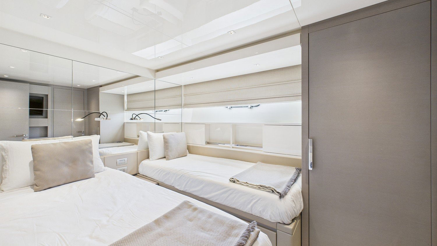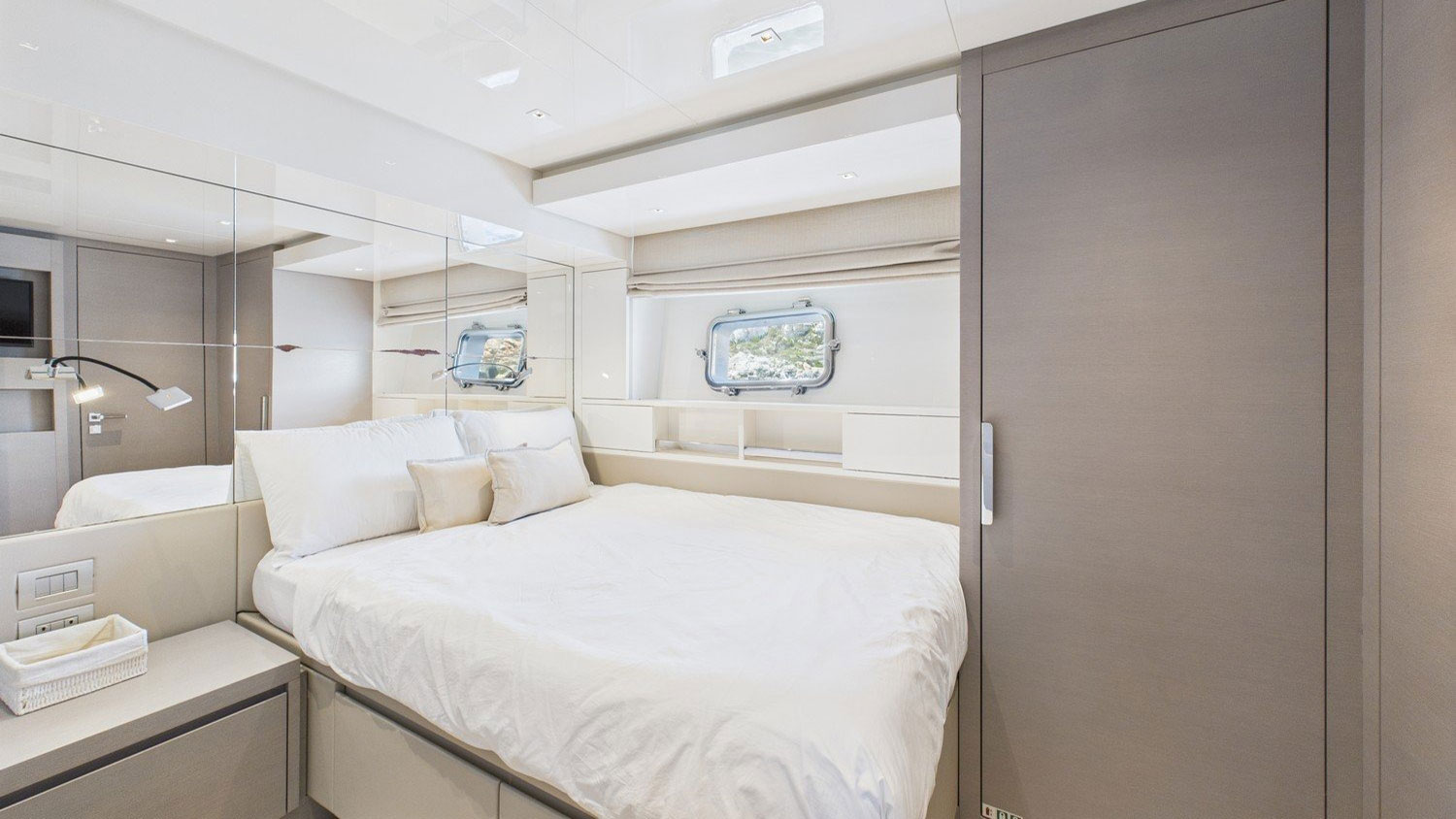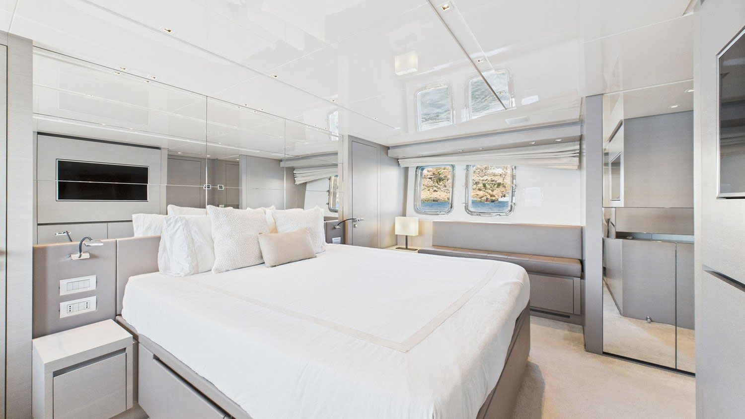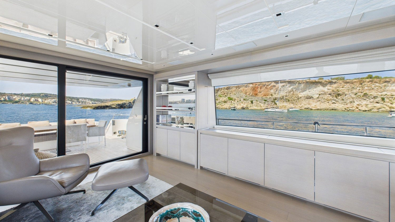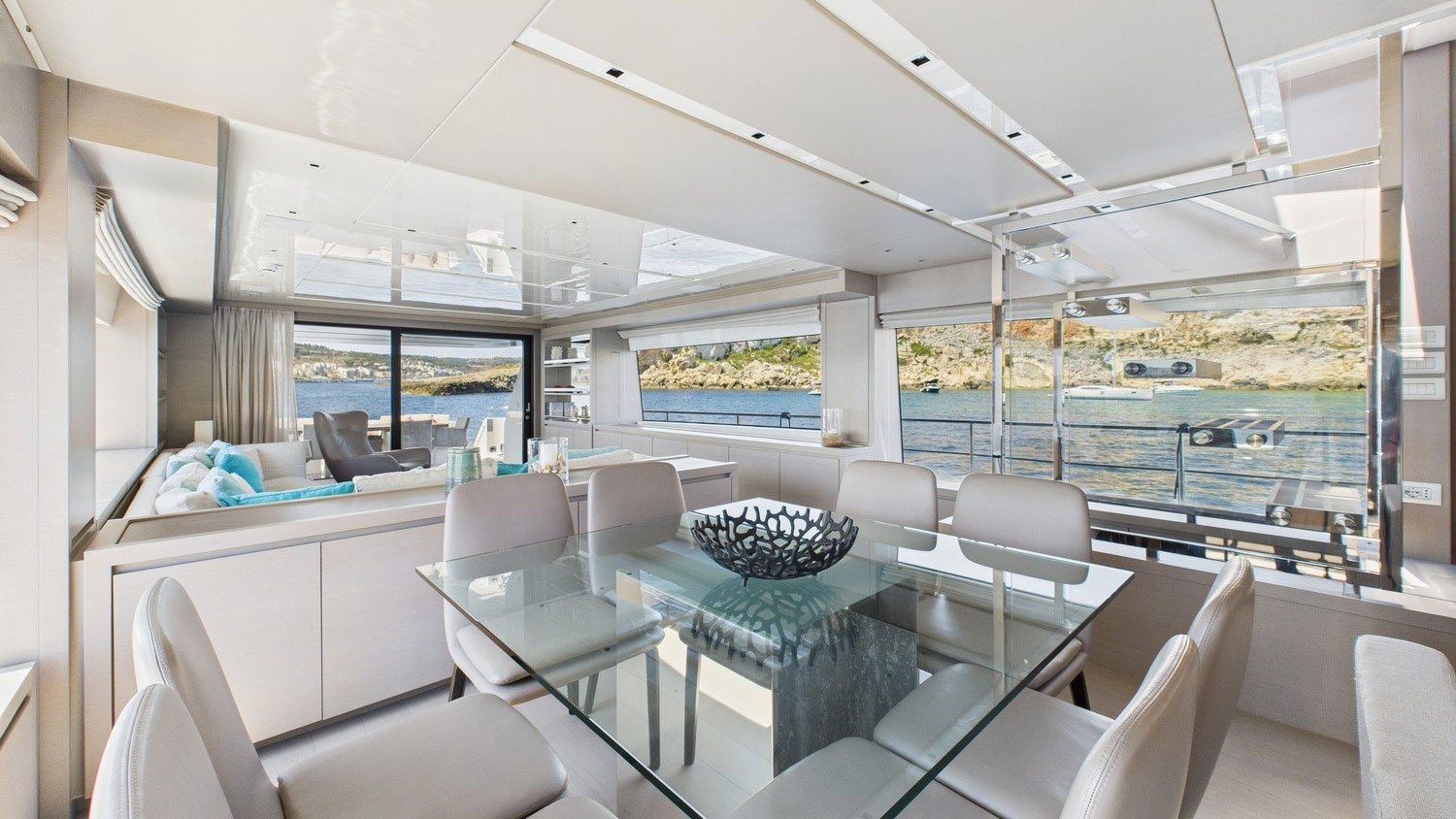 The yacht is a stunning Sanlorenzo SL86 delivered in 2018. This 27-meter yacht combines timeless elegance with cutting-edge innovation, delivering outstanding comfort and performance for unforgettable cruises in the Mediterranean. She is powered by twin 1948 Hp MTU diesel engines, which give her a cruising speed of 26 knots and a top speed of 32 knots.The new 27m motoryacht is an Officina Italian Design collaboration, its innovative features are set to establish a new standard for the entire Sanlorenzo range of planing hull yachts. The bow is now a living space with sofas, table, sunbathing cushions, and a removable sail cover awning. Up top, the flybridge is expanded into a generous sunbathing and entertaining area, thanks to a tender garage at the transom and hydraulic lift swim platform. Please contact us for more information.