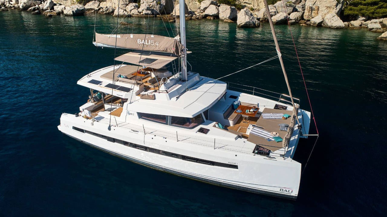 No matter if you are in the enormous saloon, which is flush with the aft and the forward cockpit, or if you are in the forward cockpit that has direct access from the saloon, or you are using the great relaxation area on the fly bridge, you will feel the pleasure and luxury than only big yachts can provide. The Bali 5.4 is characterized by the enormous, flush-decked saloon / galley / aft cockpit area and the comfortable forward cockpit that is accessed directly from saloon. Enjoy the large relaxing space on the fly bridge or in the great forward cockpit with a sundeck and in the spacious saloon with a sea view. The pictures are catalog images. Please contact us for detailed information and prices.